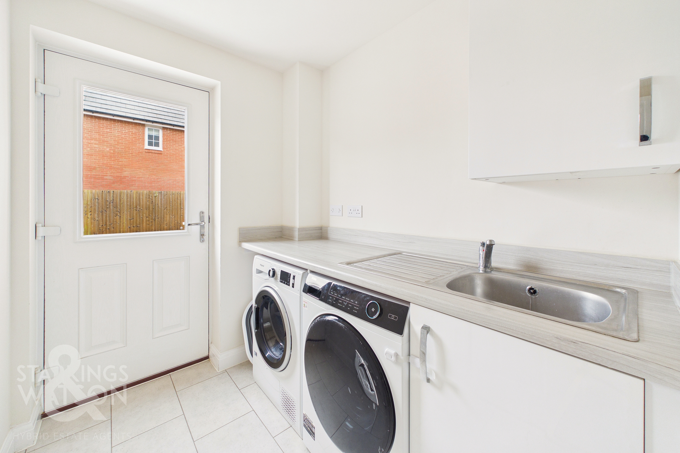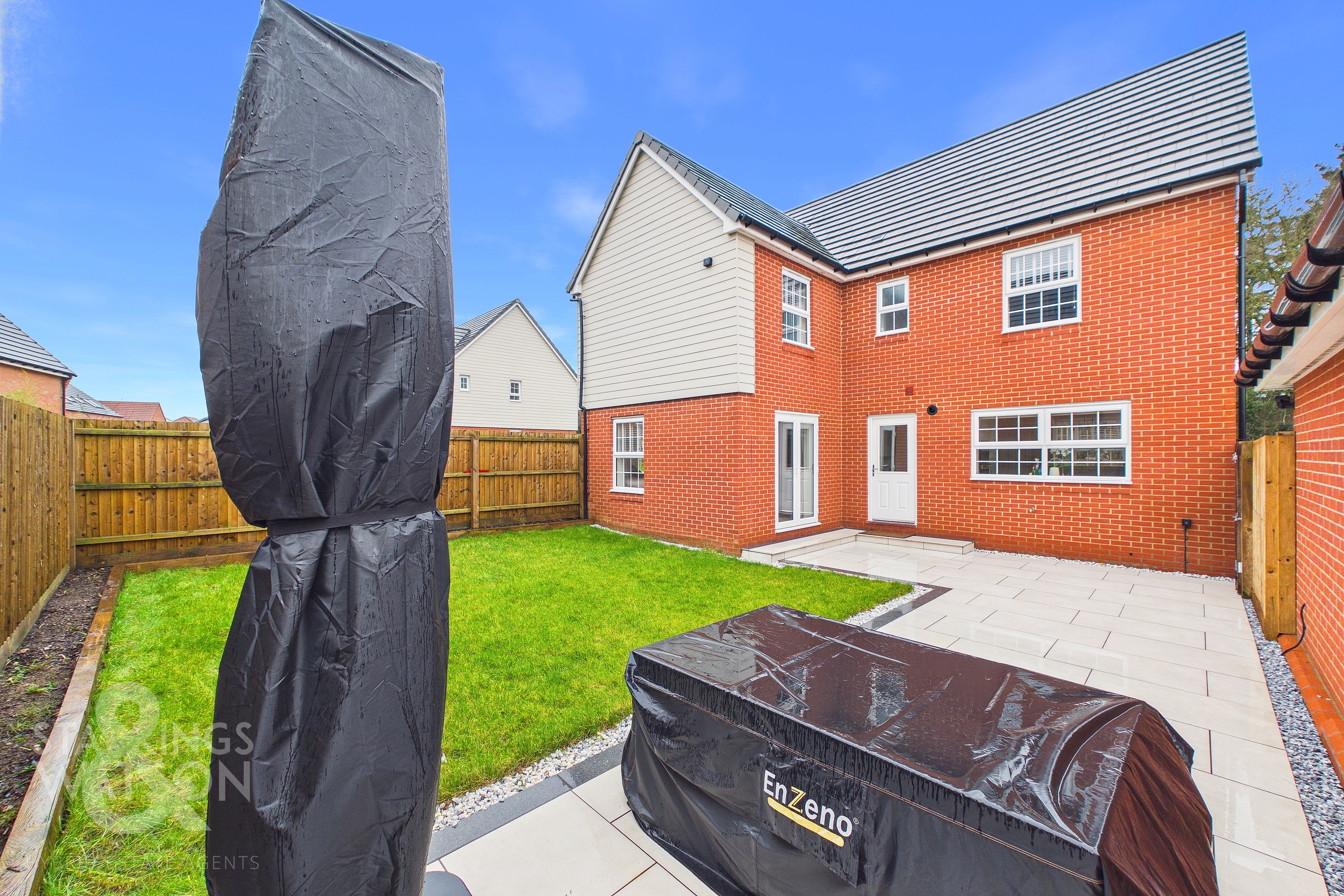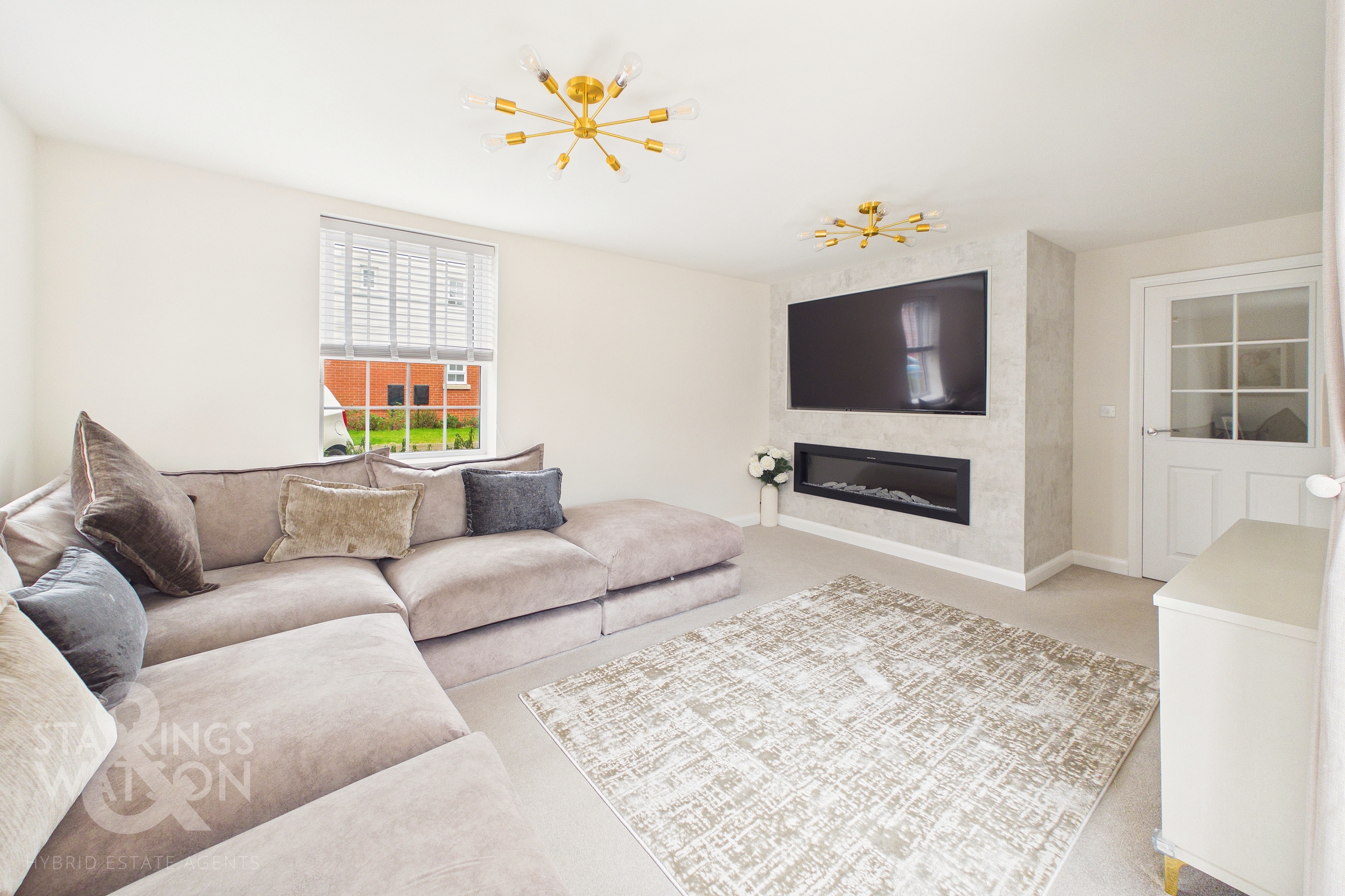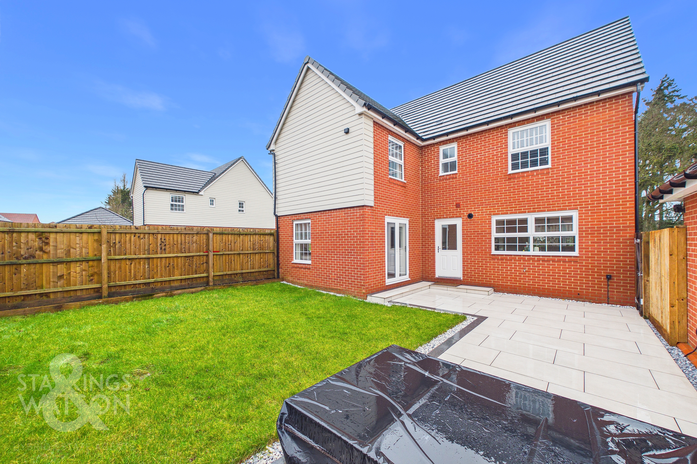 Guide Price £485,000-£500,000. MOTIVATED VENDORS. Situated within a PRIVATE CUL-DE-SAC with a picturesque tree-lined frontage overlooking Salhouse Road, this impressive 2023 BUILT detached residence offers approximately 1348 Sq. ft (stms) of well-appointed accommodation. The property is presented in AS NEW CONDITION and has been THOUGHTFULLY DESIGNED to suit MODERN FAMILY LIVING. Upon entering, you are welcomed by a generous ENTRANCE HALL leading to a spacious 20’ KITCHEN/DINING ROOM, with a BAY FRONTAGE and EXTENSIVE CUPBOARD STORAGE - perfectly suited for entertaining or family meals. The kitchen is complemented by a separate UTILITY ROOM providing practical space for laundry and storage needs. The 15’ SITTING ROOM sits to the rear, centred on a FEATURE MEDIA WALL, whilst boasting a TRIPLE ASPECT, filling the space with natural light throughout the day, while a private STUDY offers an ideal environment for home working or quiet reading. The ground floor also benefits from a convenient W.C, while upstairs, the PRINCIPAL BEDROOM enjoys its own EN SUITE SHOWER ROOM. Three further well-proportioned bedrooms are served by a CONTEMPORARY FAMILY BATHROOM, making this home a superb choice for growing families or those seeking versatile accommodation. Stepping outside, the property showcases a NEWLY LANDSCAPED REAR GARDEN, designed for low-maintenance enjoyment and year-round appeal. A PORCELAIN PATIO provides an elegant setting for alfresco dining, morning coffee, or relaxing with friends and family. A detached GARAGE provides secure parking and additional storage.