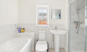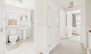 Heading upstairs, the carpeted landing includes a built-in airing cupboard and loft access hatch, with doors taking you to the four bedrooms. The main bedroom sits to the rear of the property with dual aspect views to two sides, fitted carpet underfoot and a door taking you to a private ensuite shower room - finished with a contemporary white three piece suite including a large walk-in double shower cubicle with a thermostatically controlled shower. Attractive tiled splash-backs are installed with wood effect flooring and a heated towel rail. The second bedroom sits to the front of the property with twin front facing windows, fitted carpet and built-in double wardrobe. The two remaining bedrooms are both finished with fitted carpet and uPVC double glazing, with the smaller bedroom including dual aspect views and a built-in storage cupboard over the stairs. Completing the property is the family bathroom which is presented in immaculate condition and finished with a white four piece suite including a panelled bath and walk-in double shower cubicle, with a thermostatically controlled shower, attractive tiled splash-backs and heated towel rail.