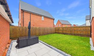 THE GREAT OUTDOORS The rear garden has been newly landscaped making the most of the space on offer including a central lawned expanse, with enclosed timber fence boundaries. An L-shaped porcelain patio includes a step from the utility room and sitting room. A gate leads to the driveway, whilst raised timber sleeper borders are ready for planting. The garage is accessed via an up and over door to front, with storage above, power and lighting.