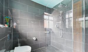 - Recently updated shower room: Walk-in shower, toilet, and basin