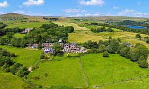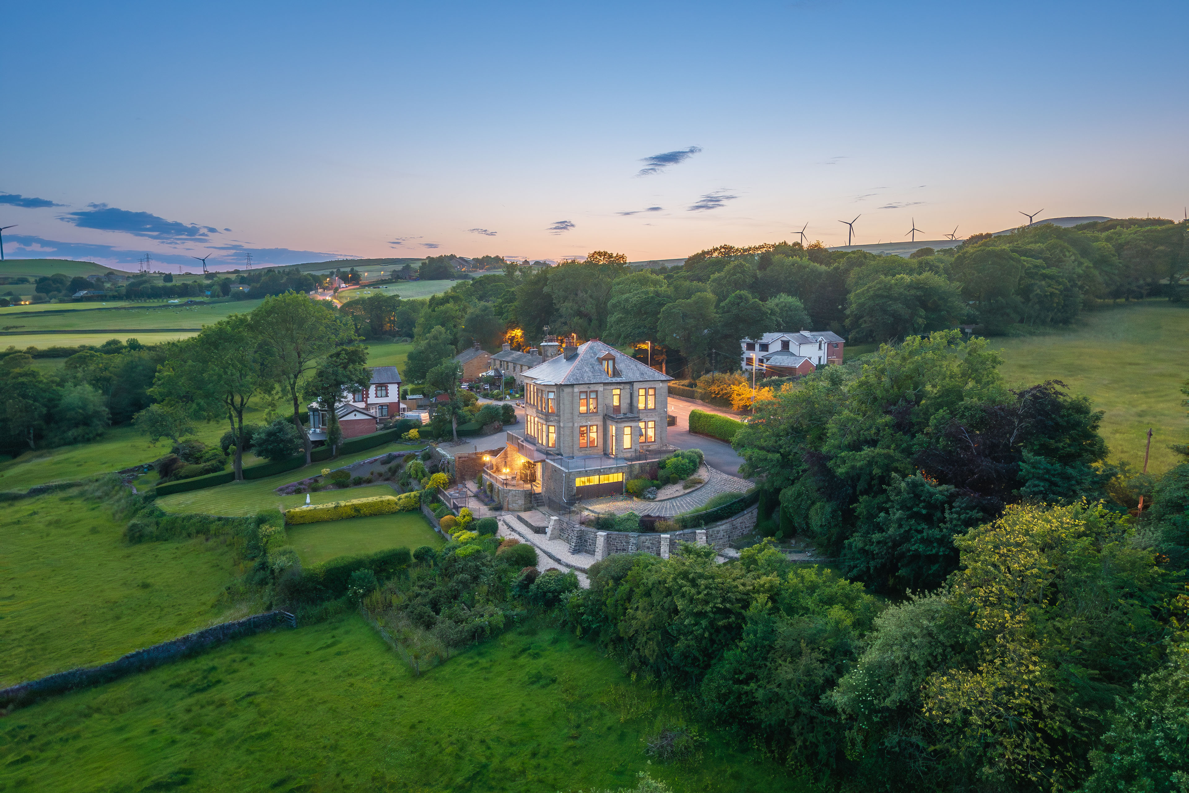 Upon arrival, wrought-iron gates set within a stone-pillared entrance open to a spacious parking area and a sweeping block-paved driveway leading up to a double garage. The handsome stone exterior sits harmoniously within the wider heritage of the area, while the expansive window and doors drink in the dramatic scenery just a stone’s throw away.