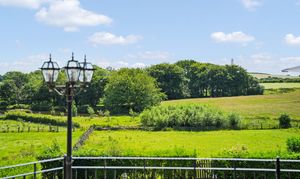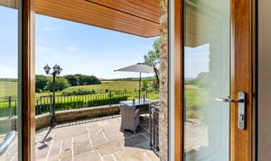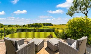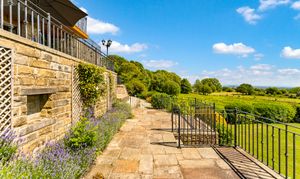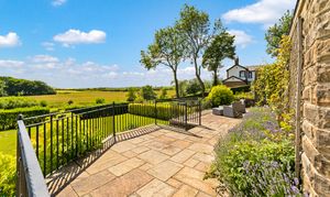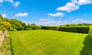 The south-facing garden at this property is a stunning, expansive outdoor space that stretches across 1.7 acres, offering a perfect balance of practicality and privacy. A raised stone terrace directly behind the house provides an ideal setting for al fresco dining and entertaining, basking in the sun throughout the day. Backdropped by lavender and climbing plants, the terrace is equally lovely in the evening, when the traditional-style lantern lights switch on.