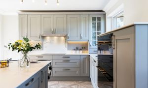 At the same time, large windows, French doors, and strategically placed LEDs create a light-filled space for entertaining and relaxing with the kids. There’s also a suite of integrated appliances, including double ovens and an induction hob with an extractor hood, as well as a hidden dishwasher and fridge-freezer .