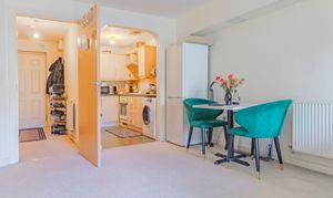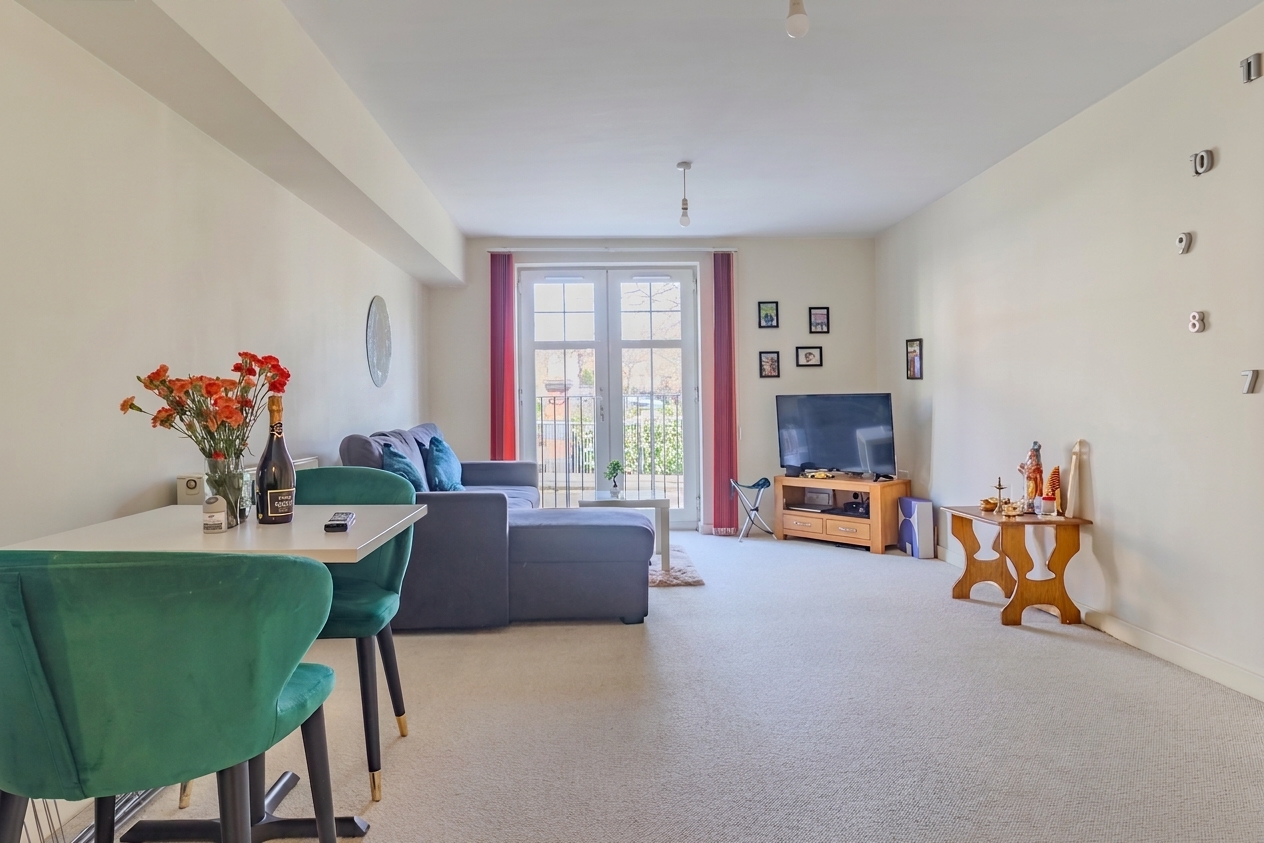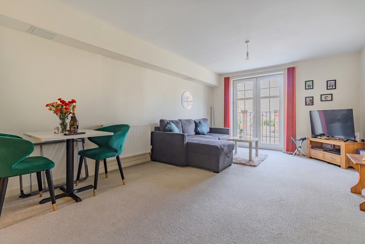 The apartment comprisies of a entrance hall with a secure entry system, ensuring peace of mind for residents and visitors alike, open-plan lounge and dining area, designed with a Juliet balcony providing natural light. The modern kitchen is seamlessly integrated into the living space, featuring a range of wall and base units for ample storage, space for multiple appliances such as washing machine, cooker and fridge freezer. A generously sized double bedroom, a family bathroom which features WC, bath and shower over. There is also another WC offering added convenience for both residents and guests.