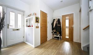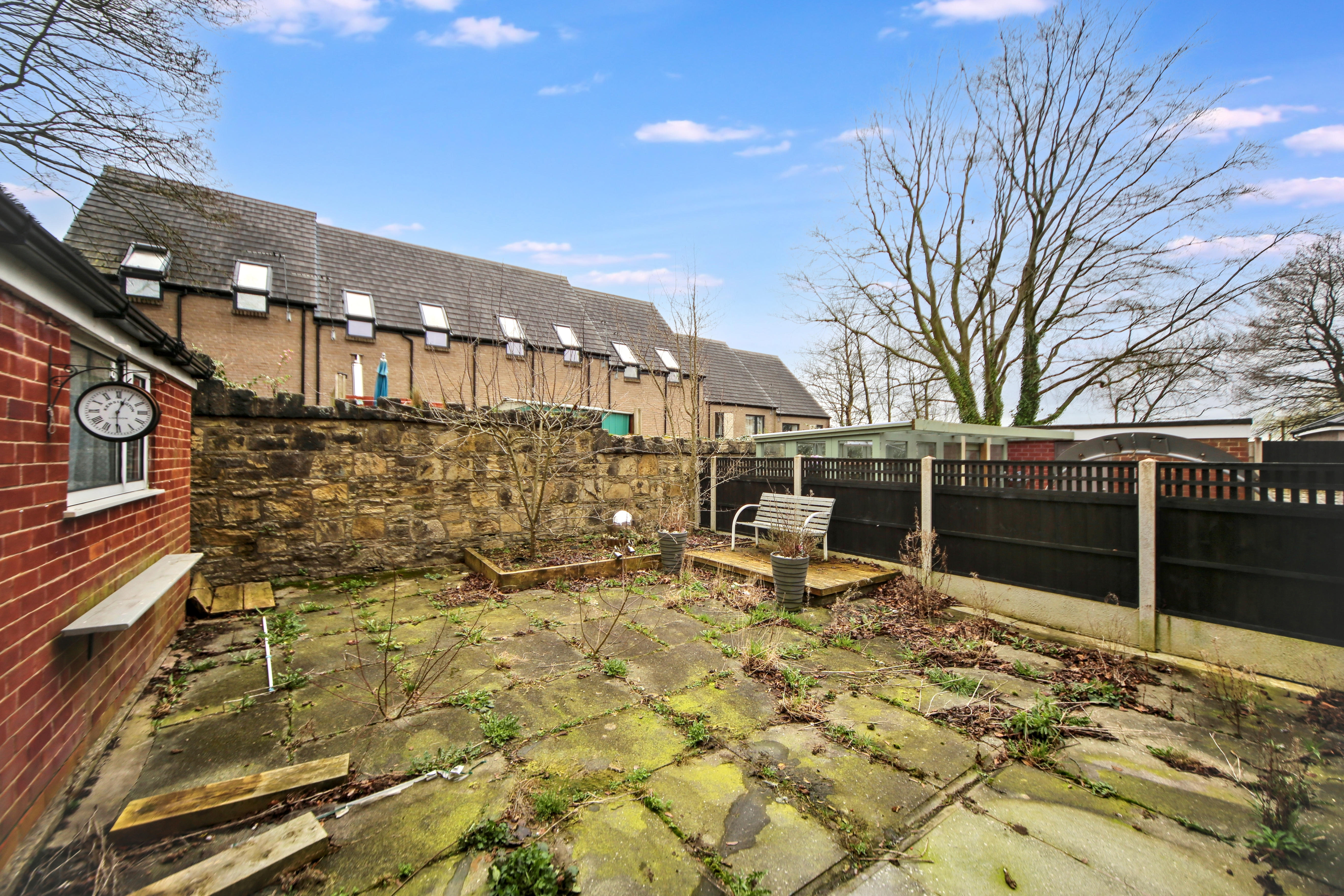 Externally there are gardens to the front and rear, mostly paved for low maintenance, and a driveway for two to three cars. A detached garage provides additional storage.