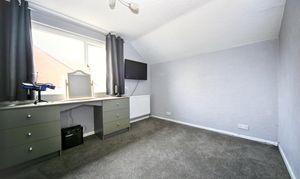 The master bedroom includes fitted wardrobes. Upstairs offers an additional bedroom or office space with built-in wardrobes and landing storage, providing versatile living space.
