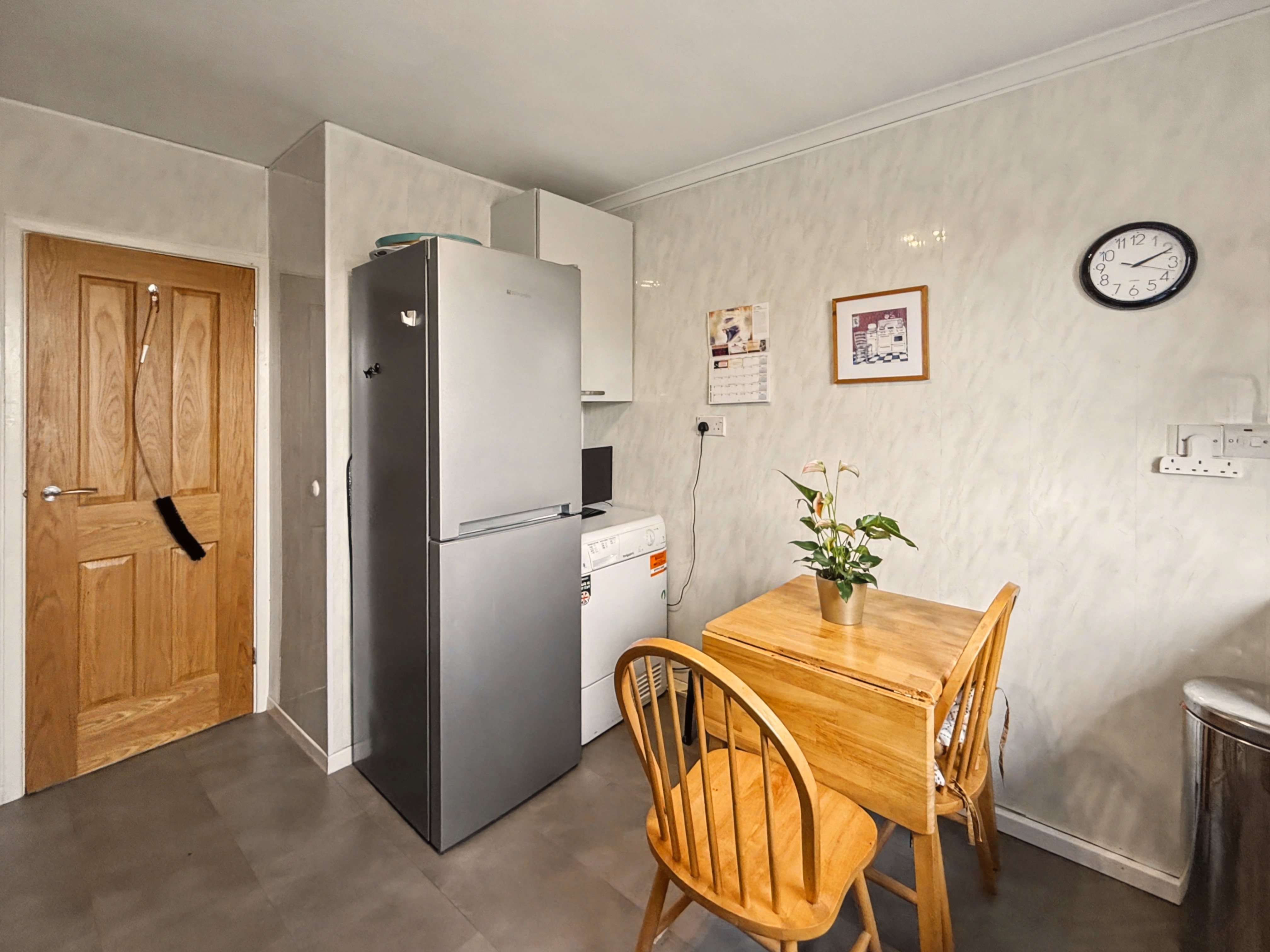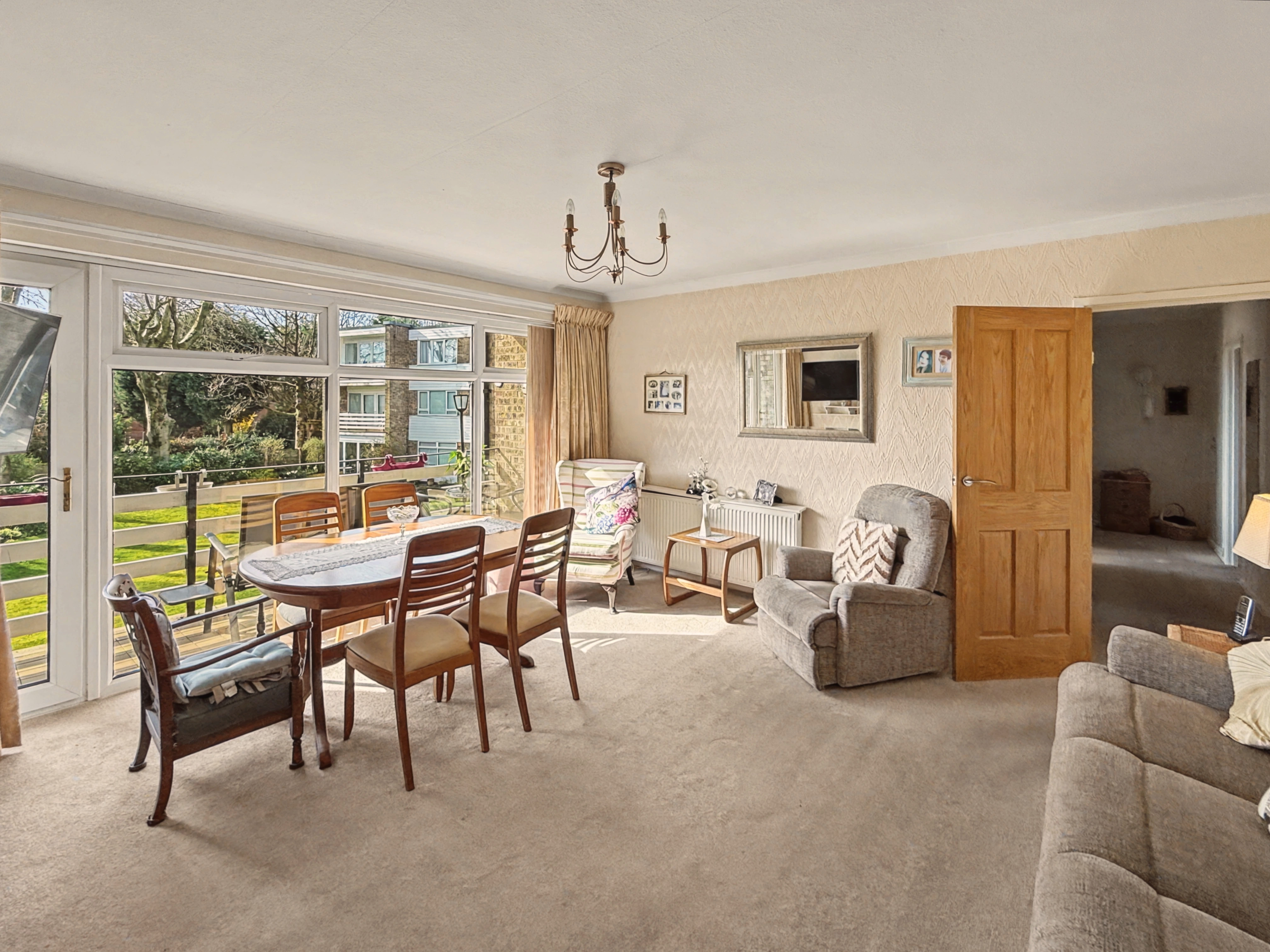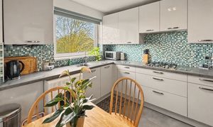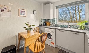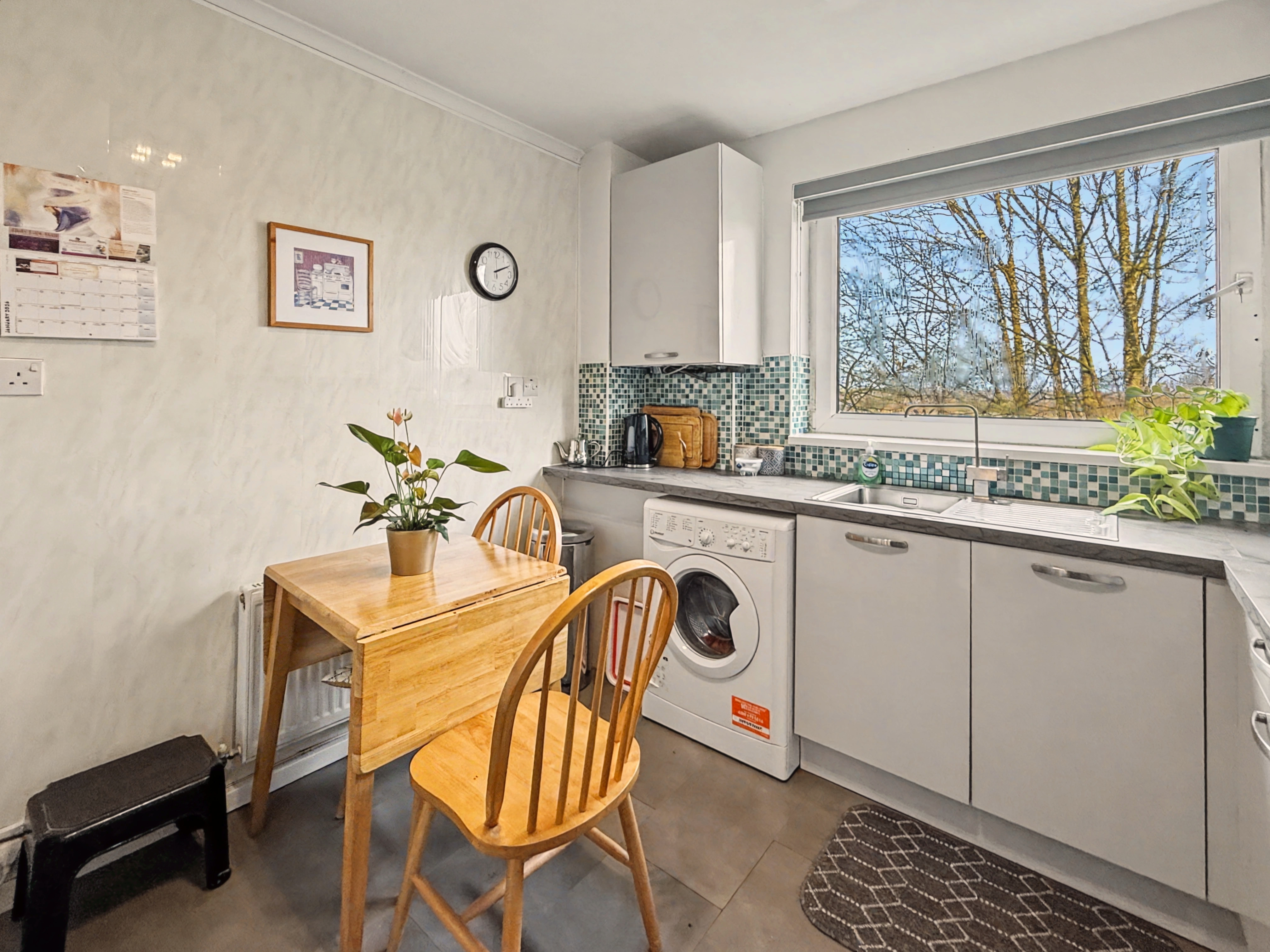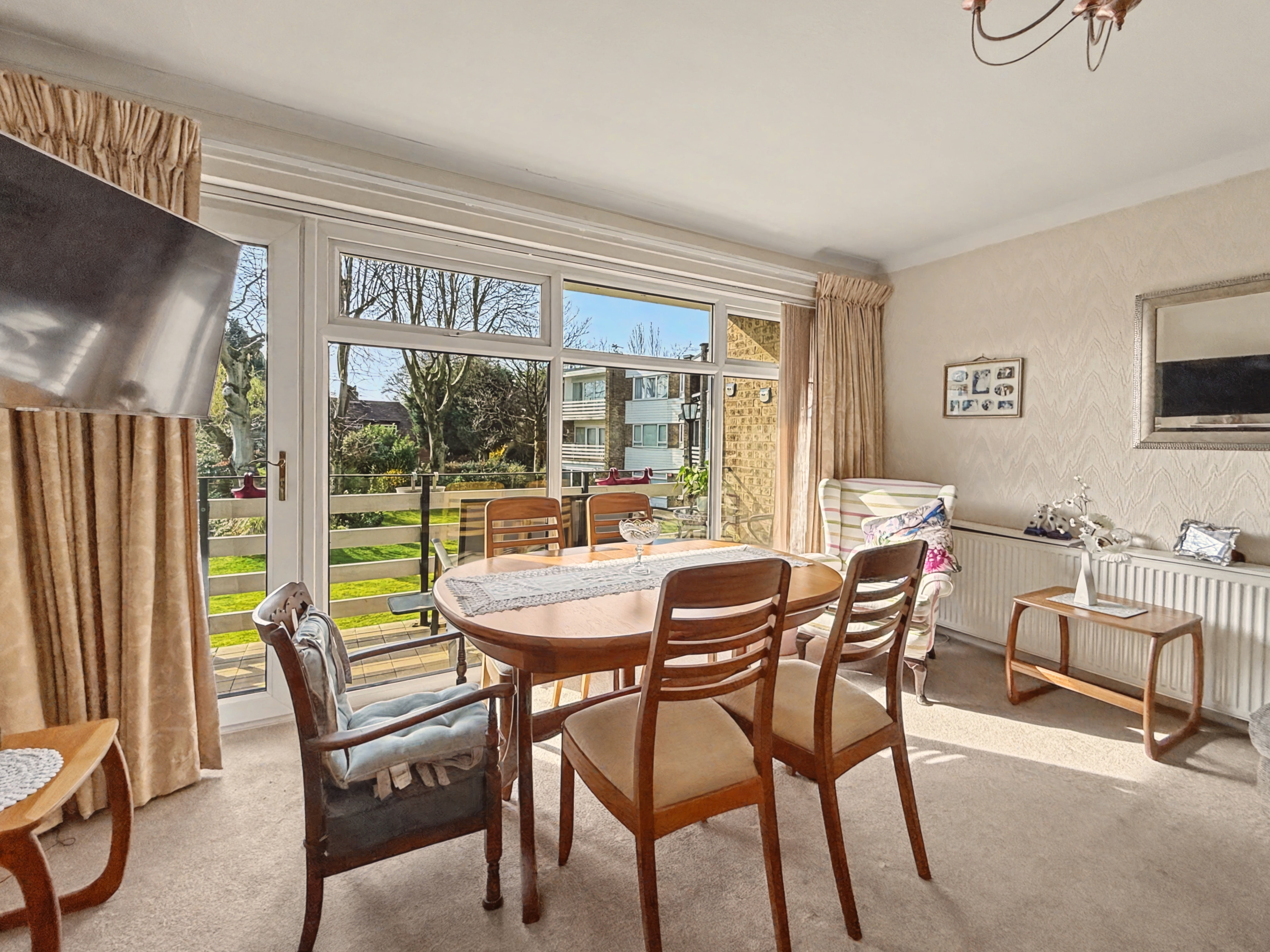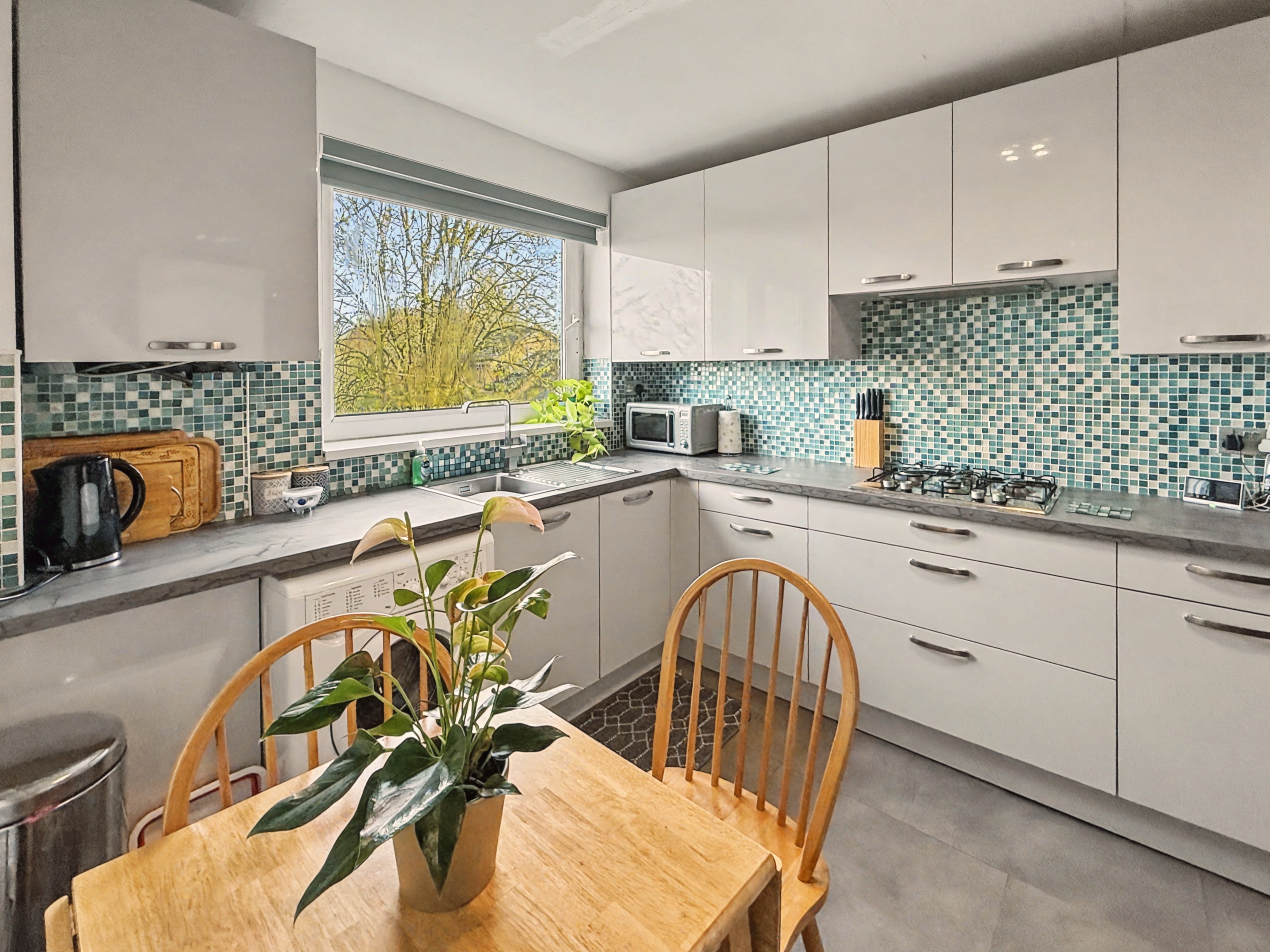The property boasts a modern fitted kitchen with ample space for a dining area, perfect for both everyday living and entertaining. The bright and spacious lounge further enhances the home’s appeal, featuring a dedicated dining space and direct access to a private balcony. From here, you can enjoy pleasant views over the well-maintained communal gardens, creating a peaceful and relaxing setting.