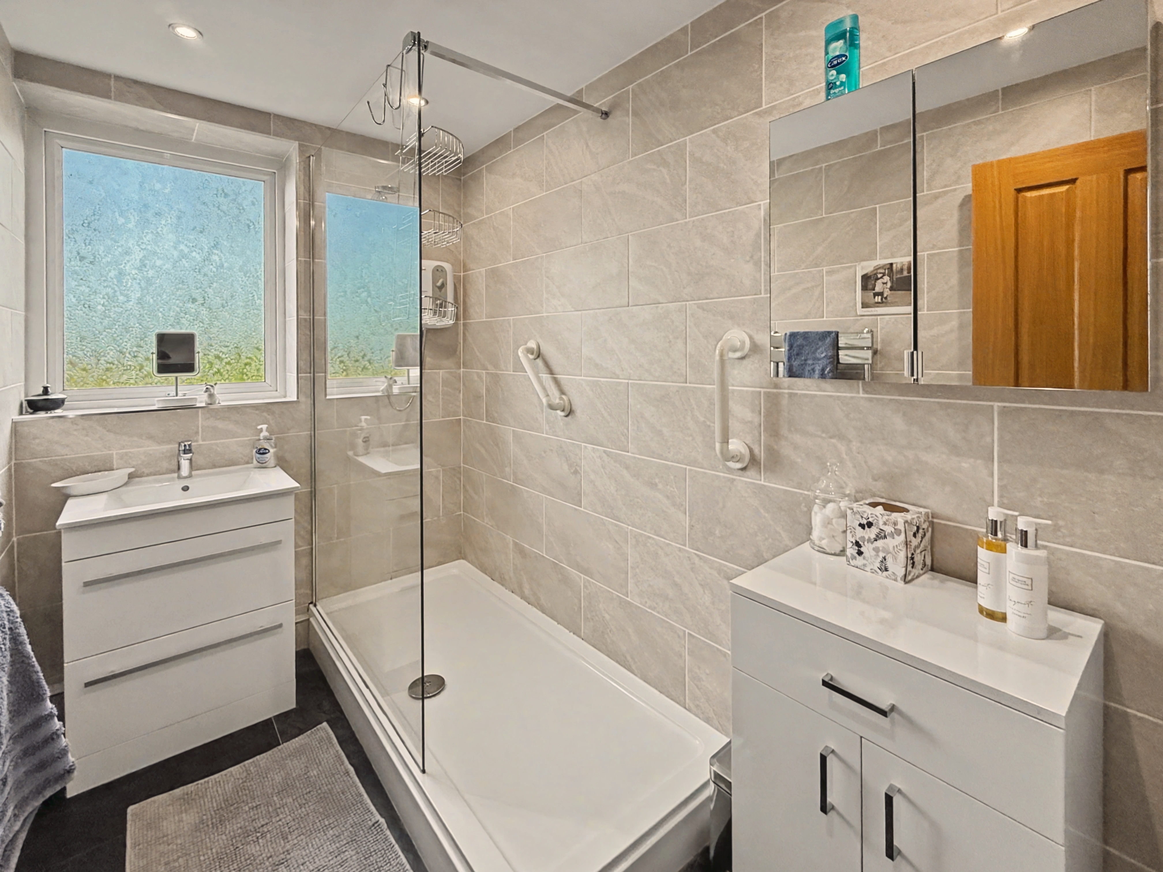 Both bedrooms are generously sized doubles, with the principal bedroom benefiting from fitted wardrobes, providing excellent storage. The accommodation is completed by a stylish, modern bathroom designed with comfort and practicality in mind.