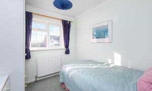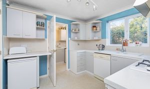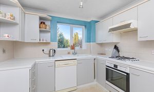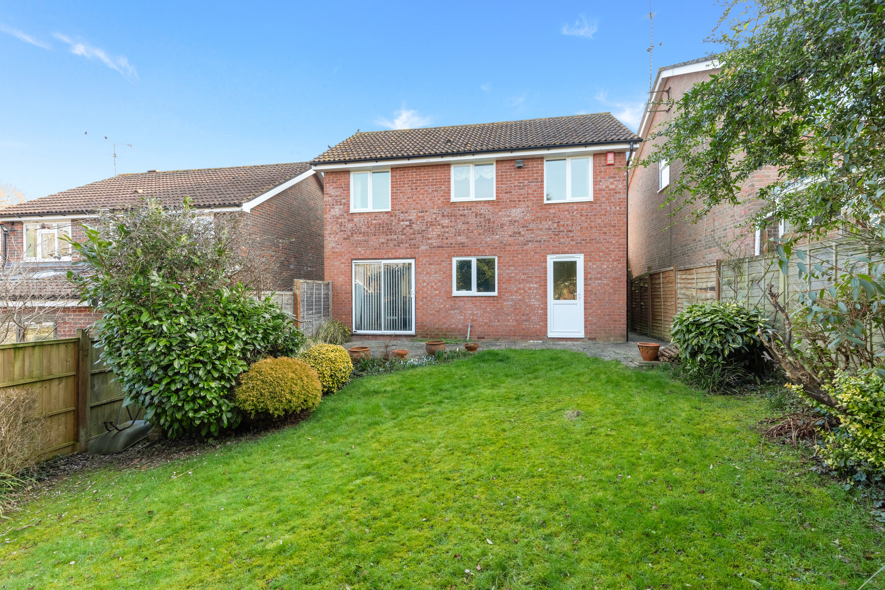 A well-located four-bedroom detached house with two reception rooms, built in the 1990s with driveway for two vehicles, garage, west-facing garden and no onward chain. The property is situated in a select residential cul-de-sac development, close to excellent schools, major transport links, shops and the 36-mile Downs Link walking path and bridleway. The accommodation comprises: entrance hallway, bay-fronted sitting room with fireplace and dining room with sliding doors on to the garden.