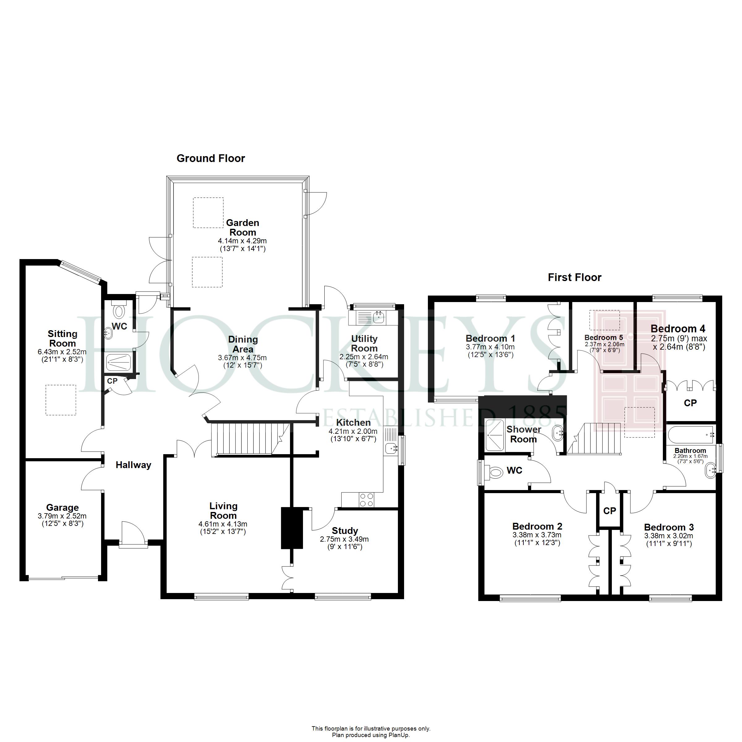 Completing the ground floor is a downstairs shower room, a storage cupboard, and an additional reception room currently used as a sitting room or office, featuring a large window overlooking the beautiful garden. There is also access to an integrated garage.