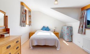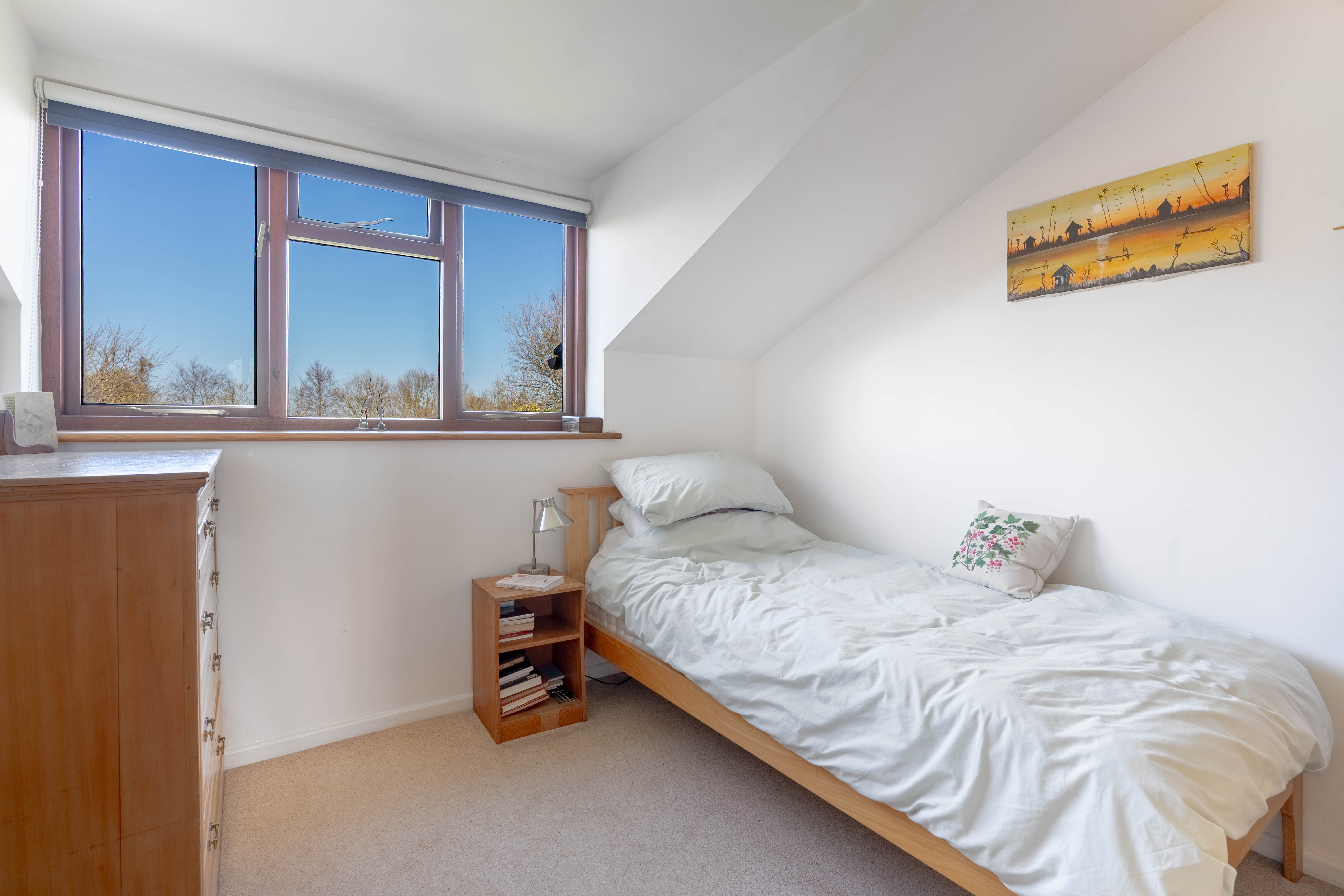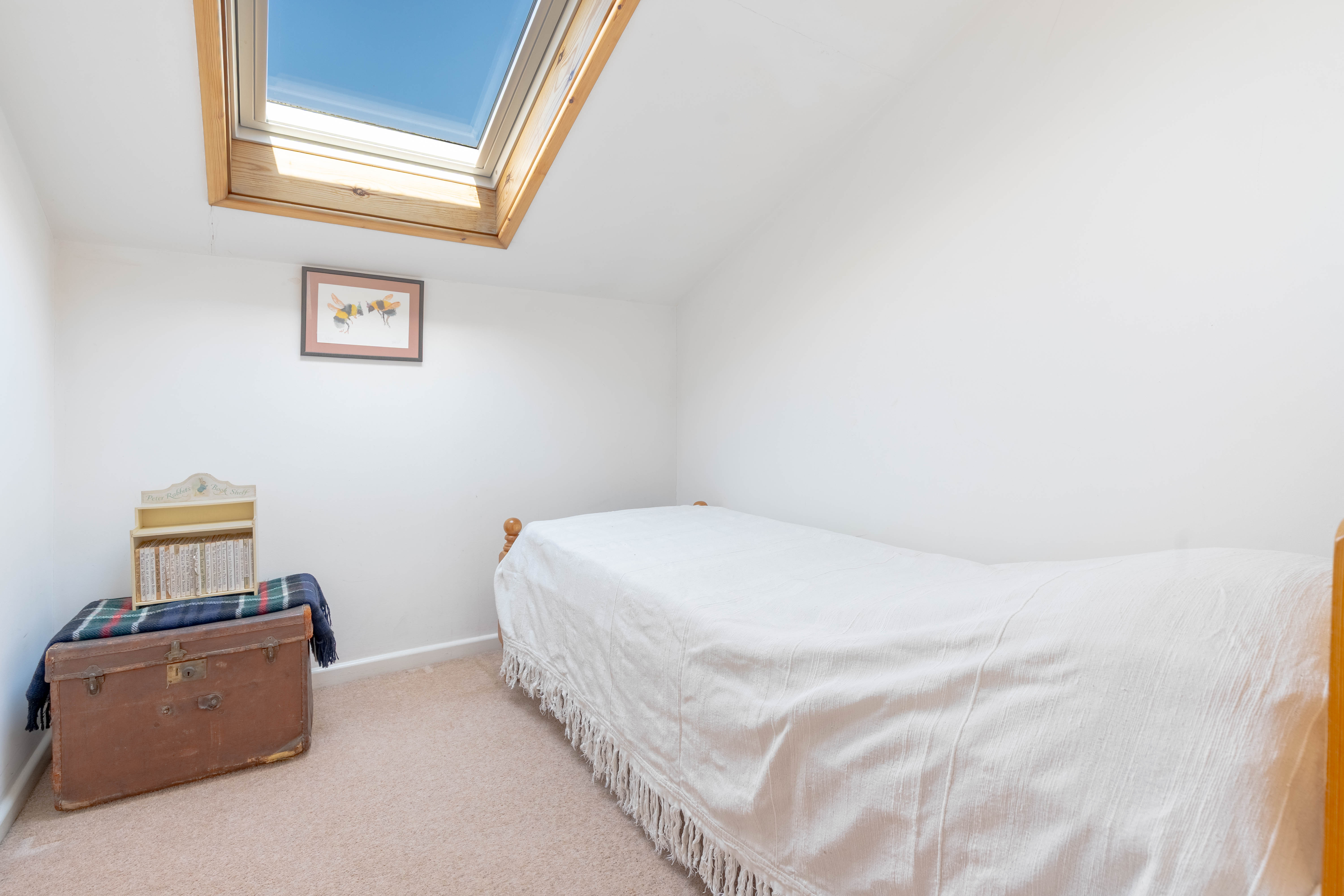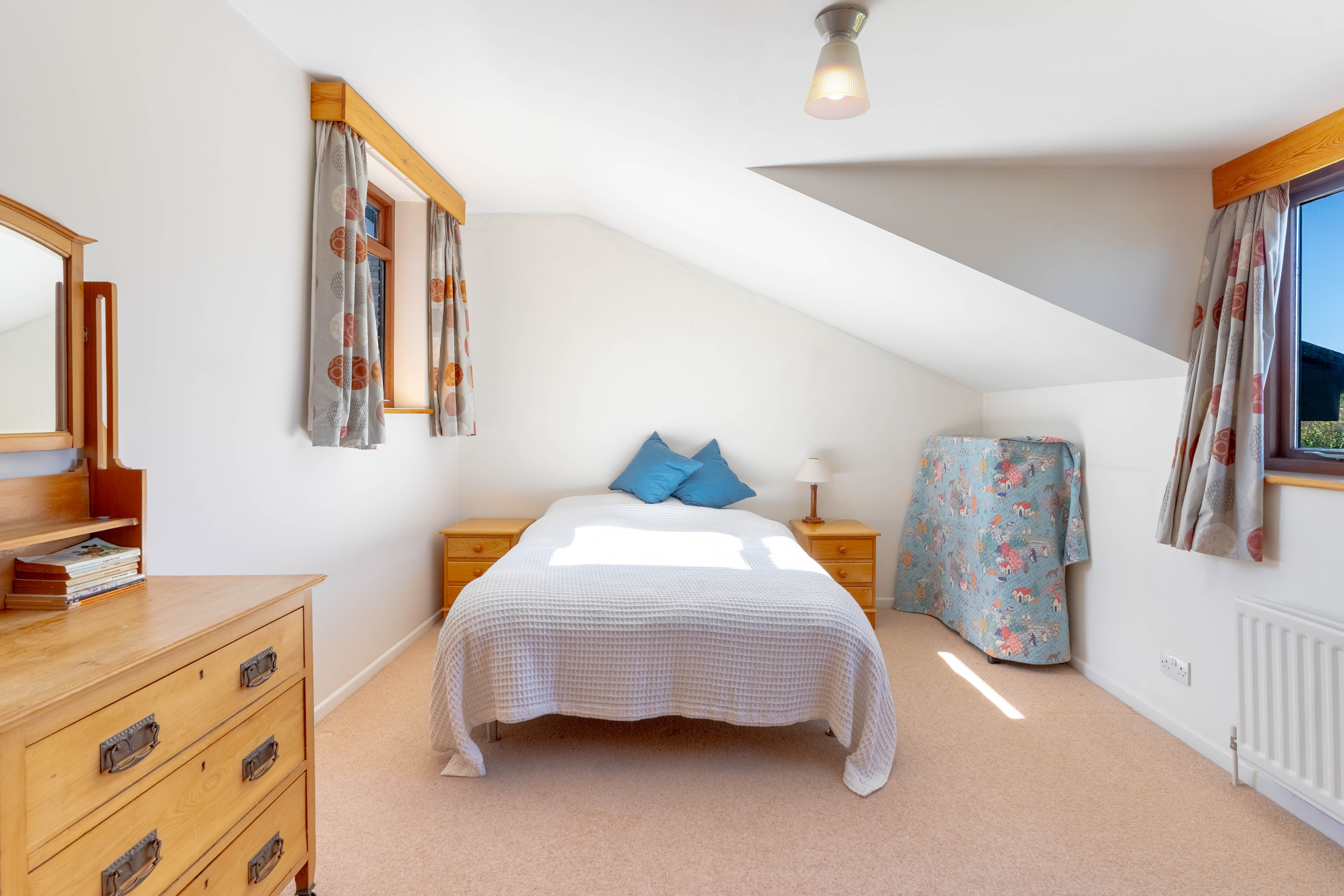 Upstairs, the landing benefits from a large Velux window, allowing natural light to pour in. The first floor comprises five bedrooms, including a spacious principal bedroom with built-in storage and wonderful views over the garden. There are two further double bedrooms, both generously sized, as well as two single bedrooms, making this an ideal home for growing families. A family bathroom, separate WC, and additional shower room serve the first floor. All bedrooms, except the fifth, benefit from built-in storage.