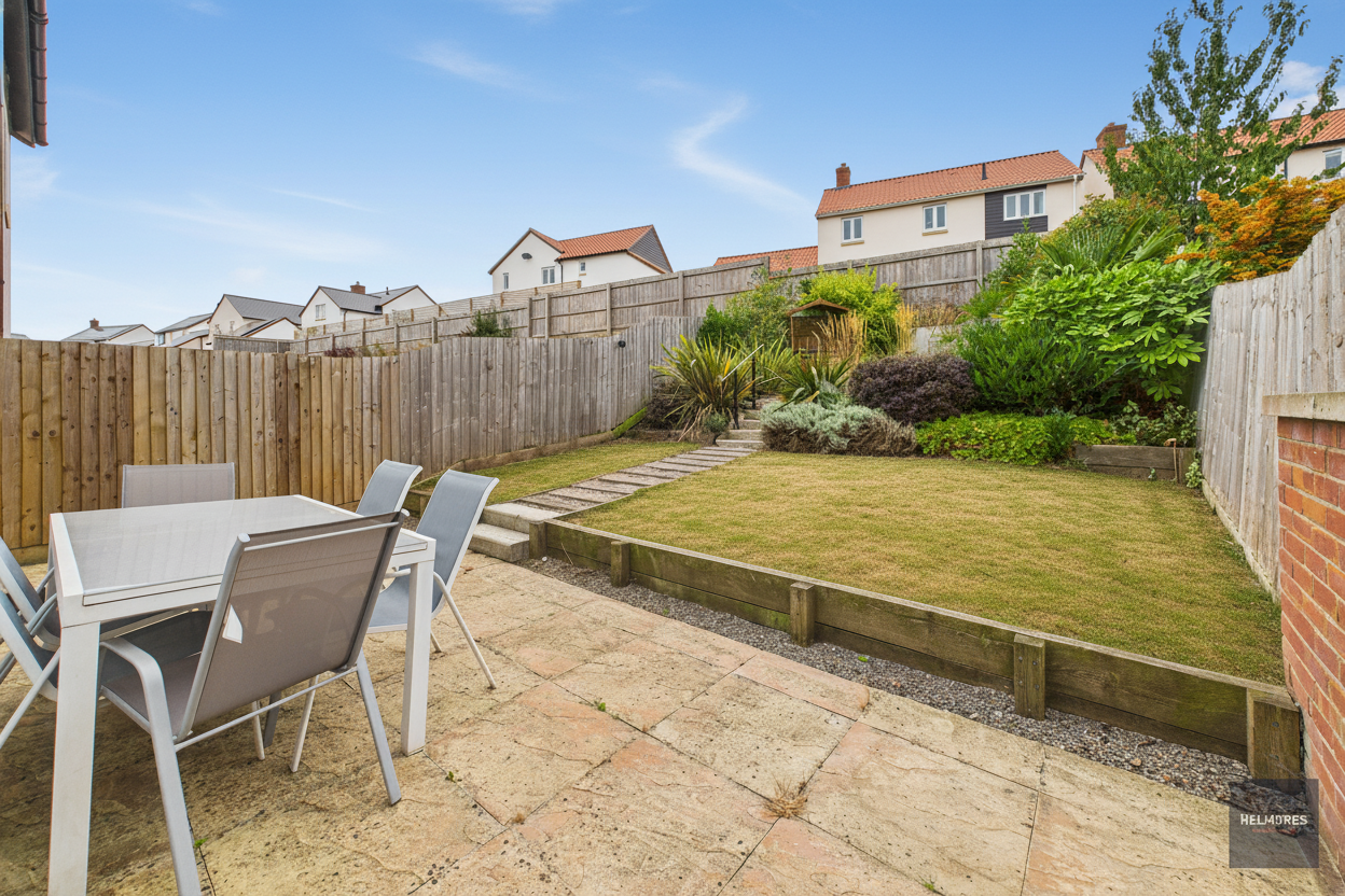 Outside to the front is an easy to maintain area with a store for bins and recycling with the drive providing off-road parking. The garage has an up and over door and an internal access to the entrance hall. Gated steps to the side give access to the rear garden which has a paved patio, lawn and planted beds with well-stocked borders. Steps lead through the lawn to a “hidden garden” at the top with further seating and a lovely southerly outlook.