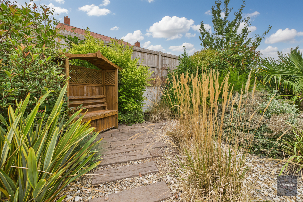 Enclosed lawned rear garden with side access gate