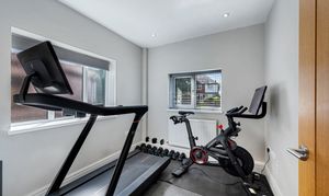 Step through the porch into a bright hallway that forms the central hub of the ground floor. To the right, a versatile reception room currently set up as a gym provides the perfect space for fitness, home working, or even a playroom. A practical utility and WC complete this side of the house.