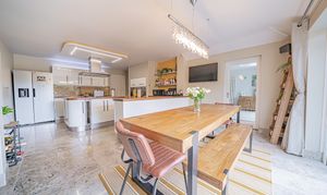 Step inside the welcoming entrance hallway, setting the tone for the rest of the property. The ground floor features a large open plan kitchen / dining room, providing excellent views of the rear garden and an abundance of natural light. There are three spacious reception rooms, including a formal dining room, a living room and a conservatory overlooking the garden. A practical utility room and a double garage add to the convenience of the layout.