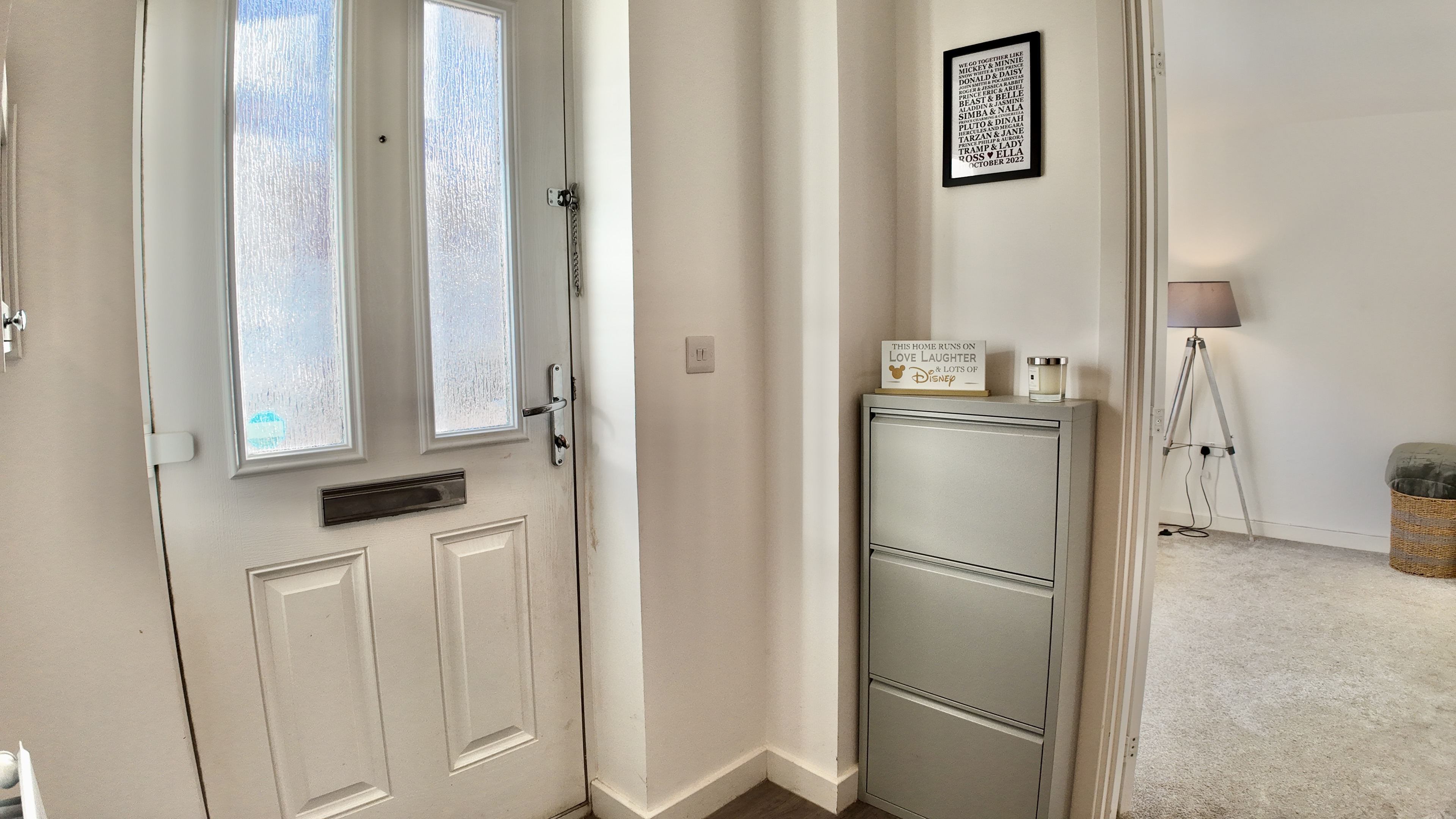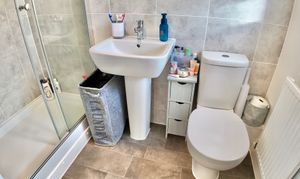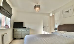 Moving upstairs, you'll find a thoughtfully designed landing with additional storage space, keeping everything organised and clutter-free. The spacious master bedroom is a true retreat, boasting built-in storage and its own ensuite shower room for privacy and convenience. The family bathroom offers a relaxing space to unwind after a long day.