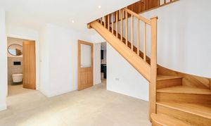 Composite glazed front door, gallery style staircase with solid oak stairs, tiled flooring with underfloor heating. Doors To :-