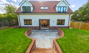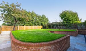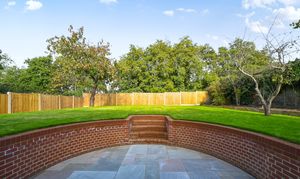 Lovely rear garden with access from the open plan living area to a beautiful sandstone patio and side access. Steps up to a lovely area laid to lawn with a raised bed down one side of the garden.