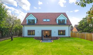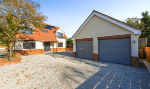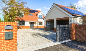 Outside, a serene oasis awaits with a lovely rear garden that leads to a sandstone patio, perfect for al fresco dining or enjoying leisurely afternoons. A side access paved with sandstone tiles gracefully leads to a meticulously tended lawn area with a raised flower bed that adds a touch of natural beauty to the surroundings. The detached double garage is a functional addition, boasting electric garage doors, a power supply, and solar panels on the side of the roof, ensuring efficiency and eco-friendliness. A front electric gate opens to reveal a spacious shingle driveway capable of accommodating multiple vehicles, making hosting guests or returning from a day's work a stress-free experience. This property offers a seamless fusion of elegance, functionality, and comfort, making it an ideal sanctuary for those seeking a premium living experience in a desirable location.