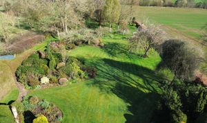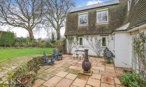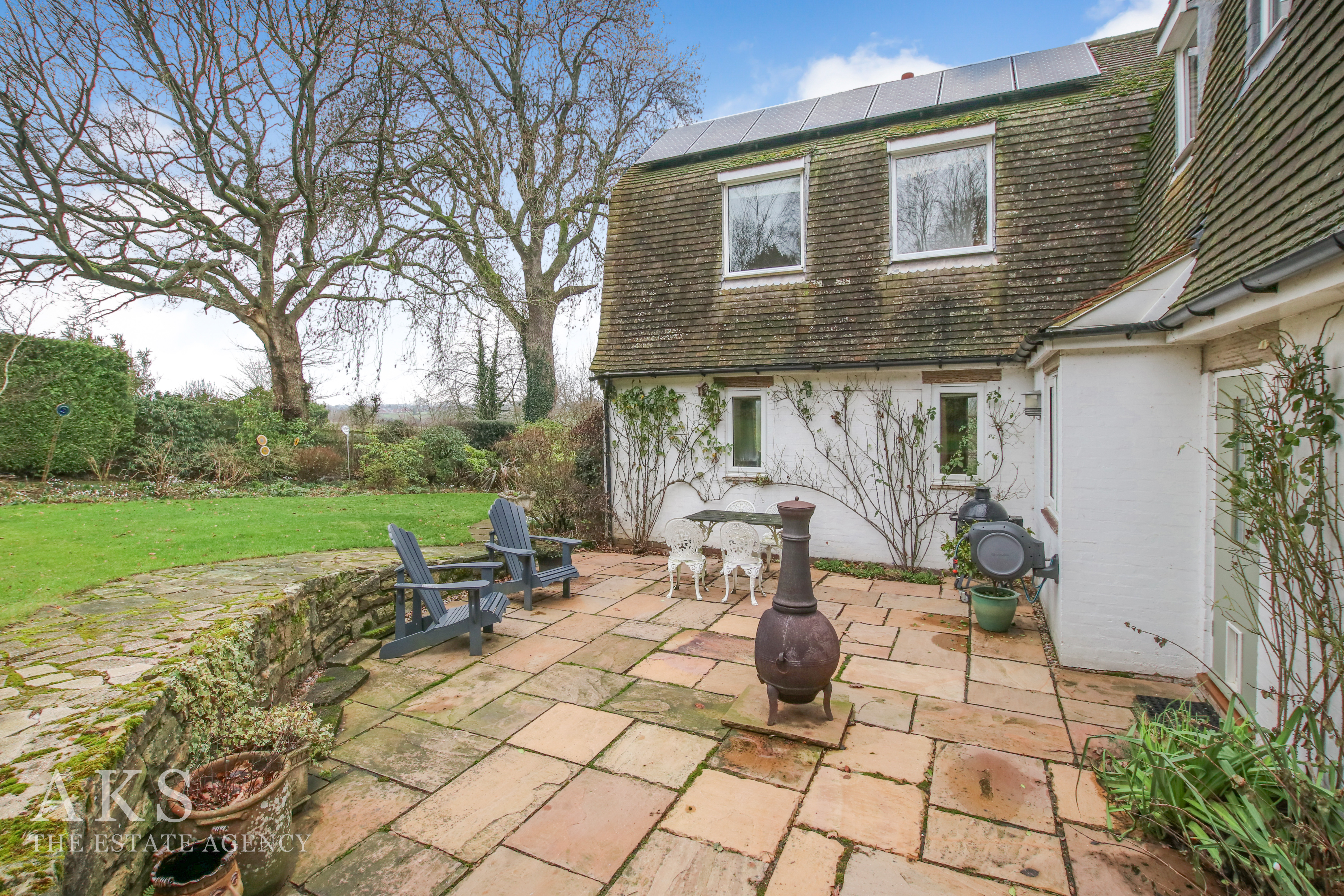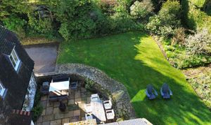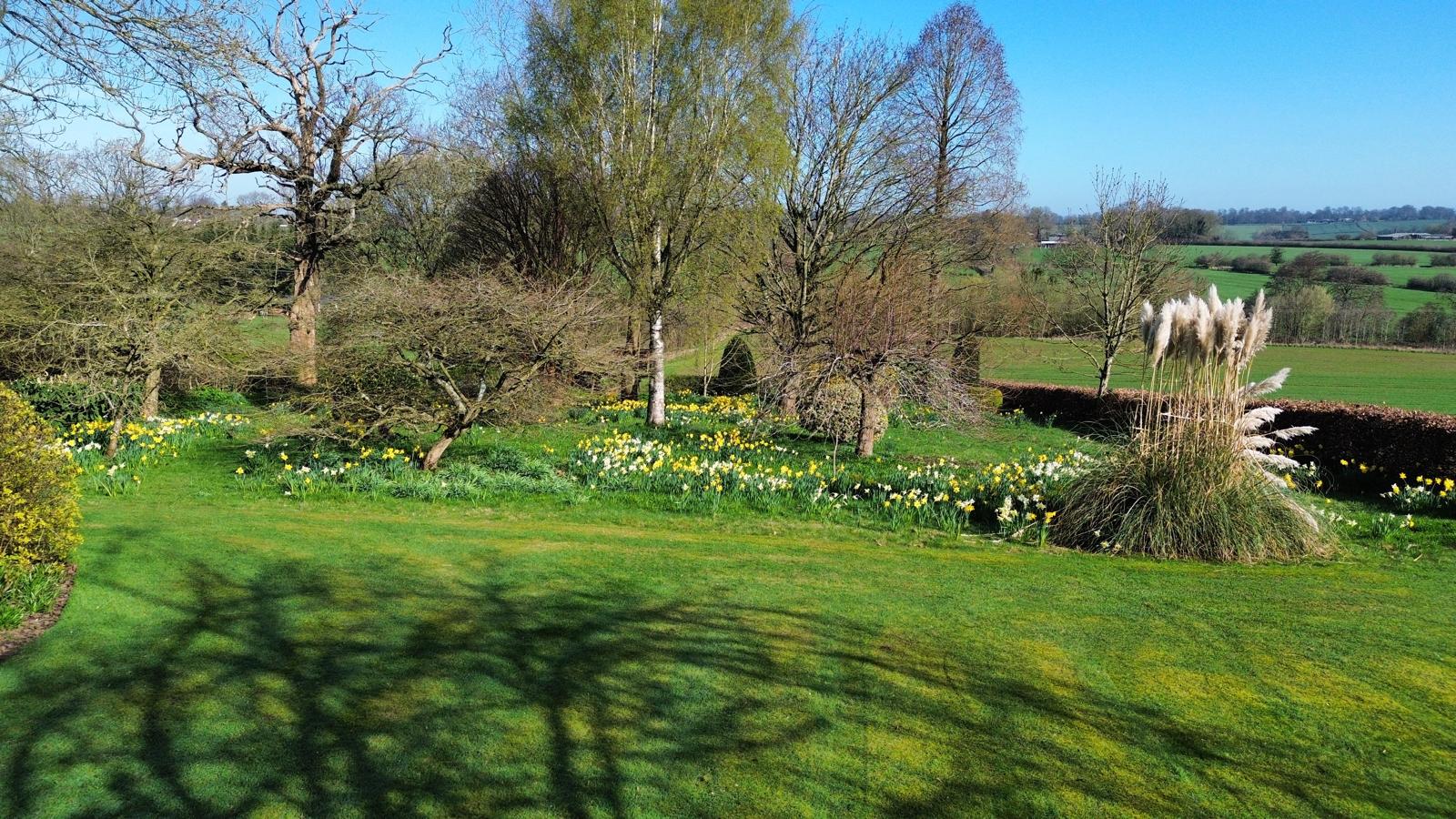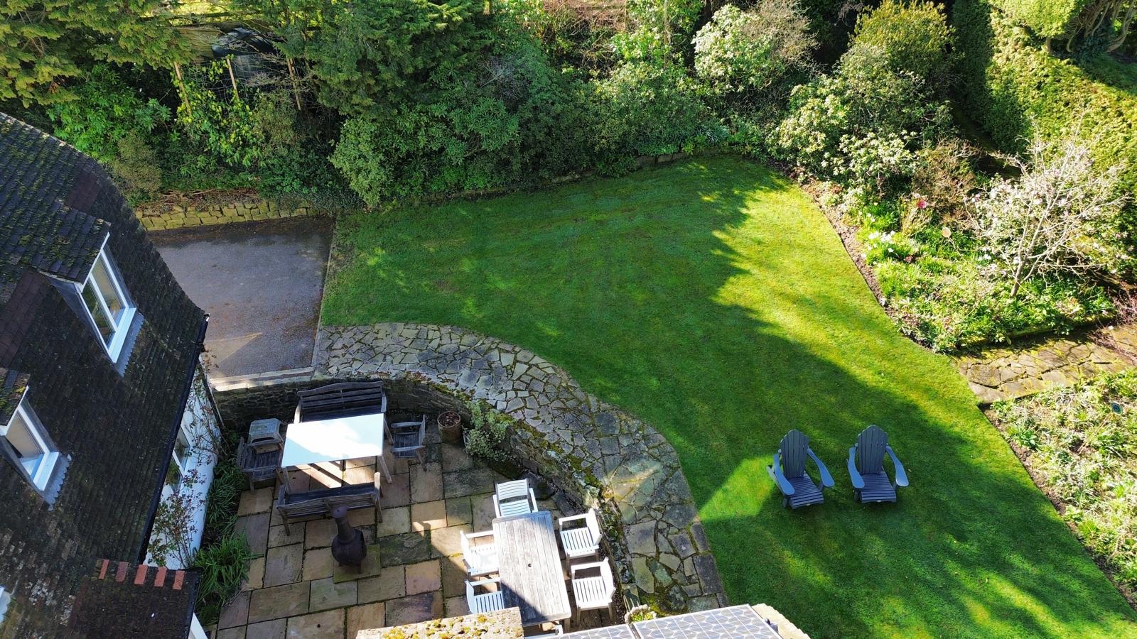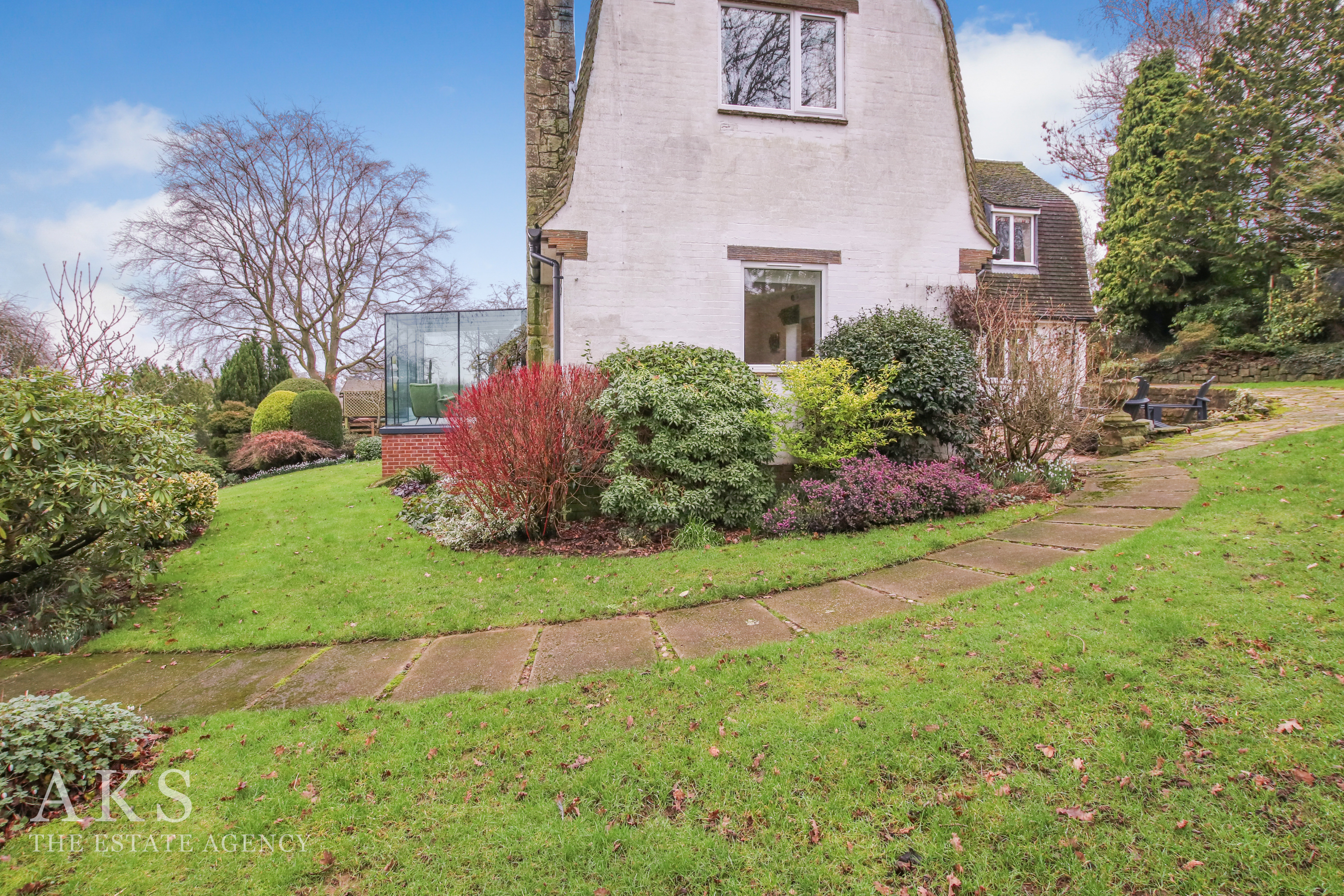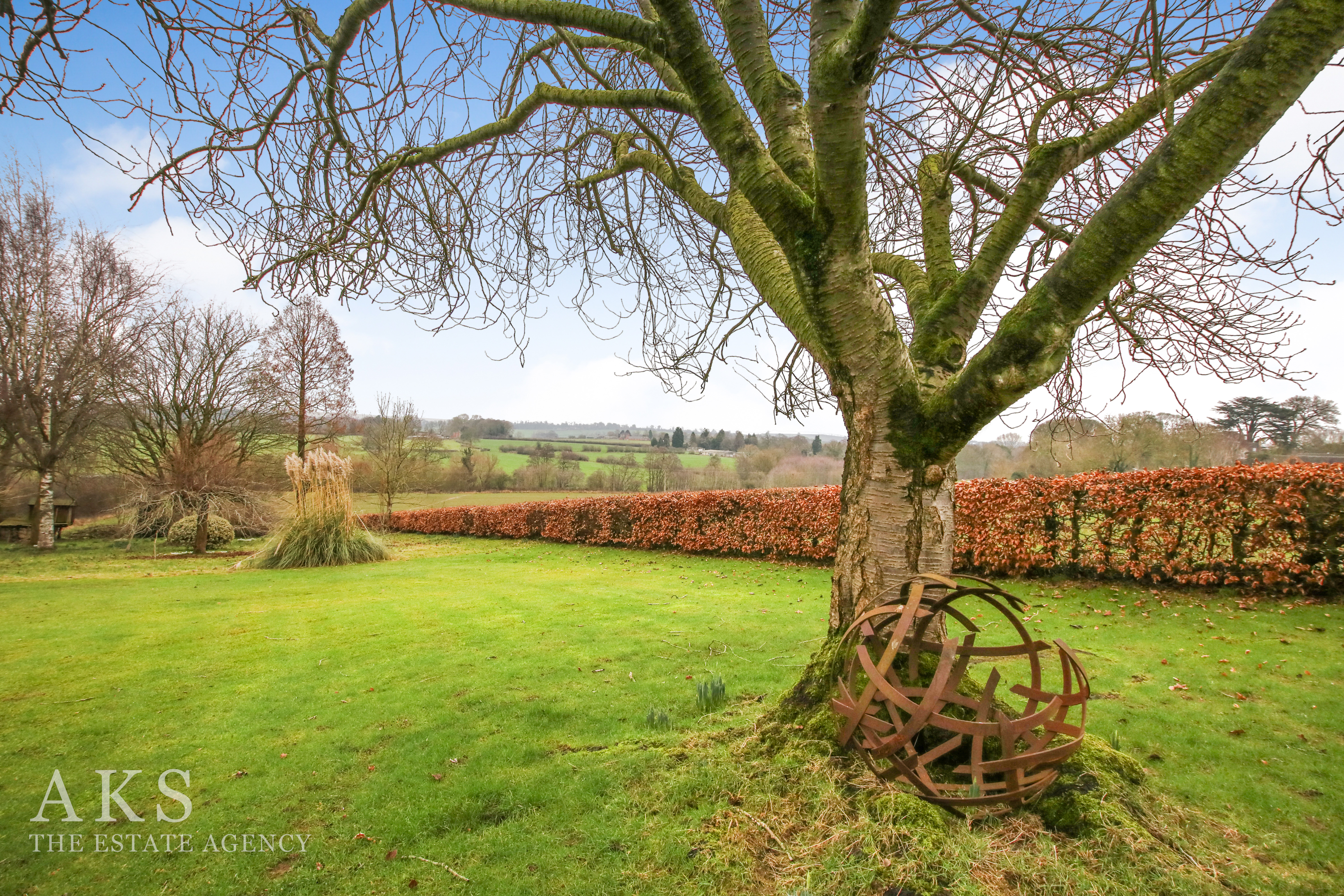 The outside space is truly exceptional. Every corner of the garden feels thoughtfully designed to make the most of this wonderful setting. Tucked into the front corner of the home is a private seating area, accessible straight from the kitchen, which feels like the perfect spot for a morning coffee in the warmer months. A pathway lined with mature borders leads you to the rear garden, beautifully maintained with trees and planting that burst into life through spring and summer and in autumn time offers apples, plums and berries.