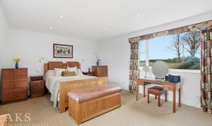 Upstairs does not disappoint, the five spacious bedrooms provide flexibility for family life, guests, or working from home. The main bedroom offers space and privacy in equal measure, accessed via its own hallway and complete with an en‑suite, built‑in wardrobes, and dual‑aspect views. It delivers everything you’d hope for in a primary suite. The second bedroom feels just as special, also set back from the landing with its own hallway, built‑in wardrobes, and an en‑suite, overlooking the beautiful front garden. The remaining three bedrooms are all well‑proportioned, and the main family bathroom is perfectly positioned for convenience.