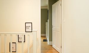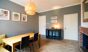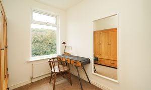 A stunning lounge with a multi-fuel stove is well complemented by the open-plan kitchen and dining. Finished in warm natural tones, the space features an integrated kitchen, a gas fireplace and allows access to the garden. Moving upstairs, the bedrooms offer a great deal of flexibility. The first-floor double bedroom benefits from additional space above the passageway with plenty of room for fitted or stand-alone furniture. The second floor features a fabulous double with Velux windows and bespoke fitted storage. The layout is complete with a single bedroom, ideal as an office, alongside a modern shower room.