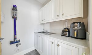 To the first floor, the property provides four well-proportioned bedrooms. The principal bedroom suite benefits from a dressing area and a private ensuite bathroom, while the remaining bedrooms are served by a stylish family bathroom. A separate laundry room adds further practicality for busy family living.