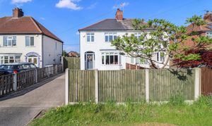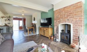 Set back on Clowne Road in popular Barlborough, this beautifully presented three-bedroom semi pairs character with modern living. A generous hallway with a feature staircase (and space for storage beneath) leads through to a rear extension that creates a bright, open-plan kitchen/dining/living zone. The contemporary kitchen sits slightly to the side for natural separation, with stylish cabinetry, integrated appliances and marble-effect tiling, flowing into a dining area and garden room. Large windows and patio doors frame open views across the fields and connect seamlessly to the garden. To the front, a bay-windowed lounge blends period charm with an exposed brick fireplace (log-burner ready).
