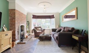 - Bay-Windowed Lounge With Exposed Brick Fireplace