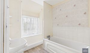 Upstairs there are 2 double bedrooms to the front and one to the rear. The bathroom has a white suite bath, WC and sink. The windows are timber single glazed and heating is gas central heating (from bottles).
