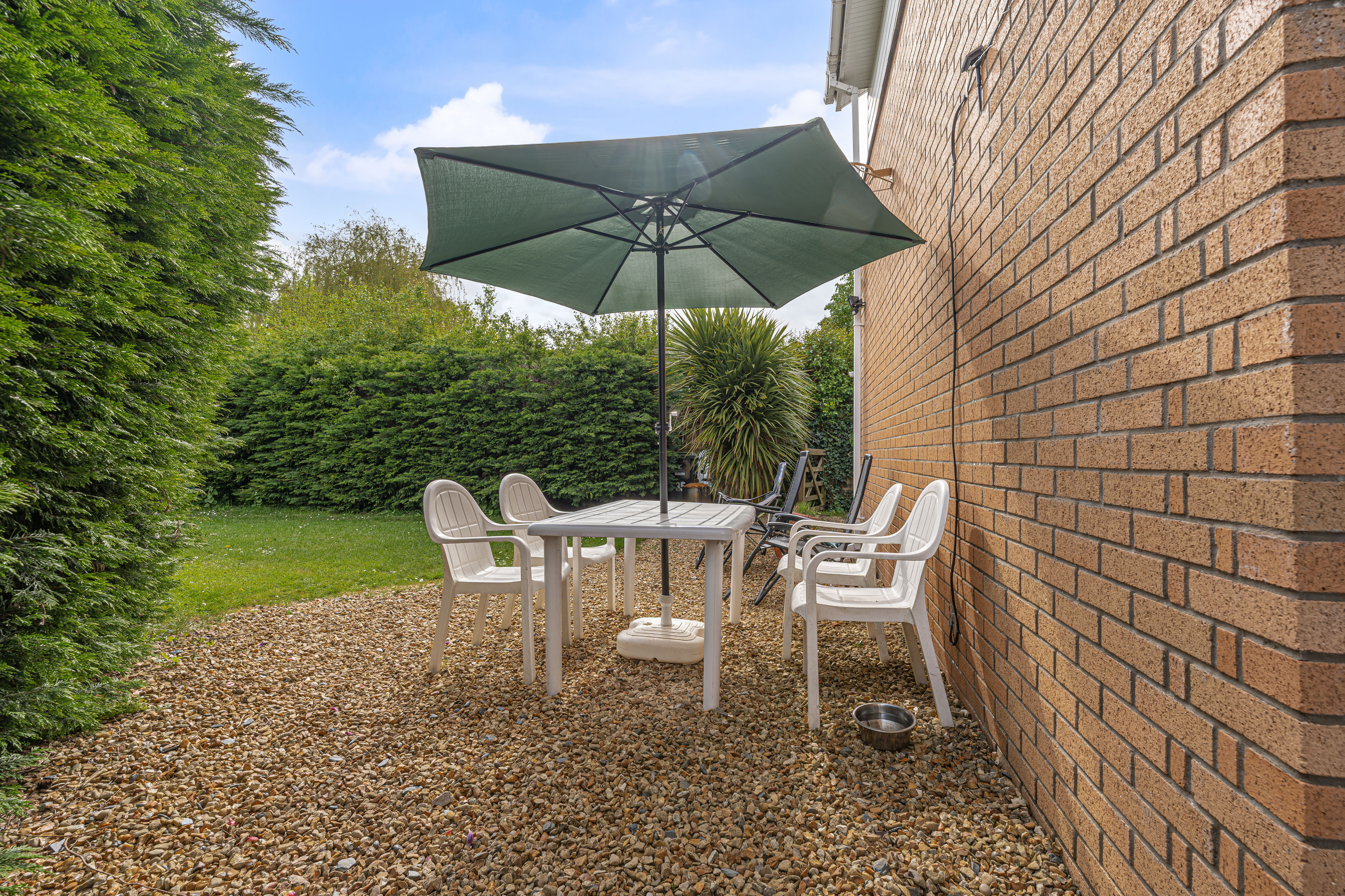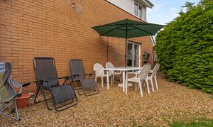 Enclosed rear garden with patio