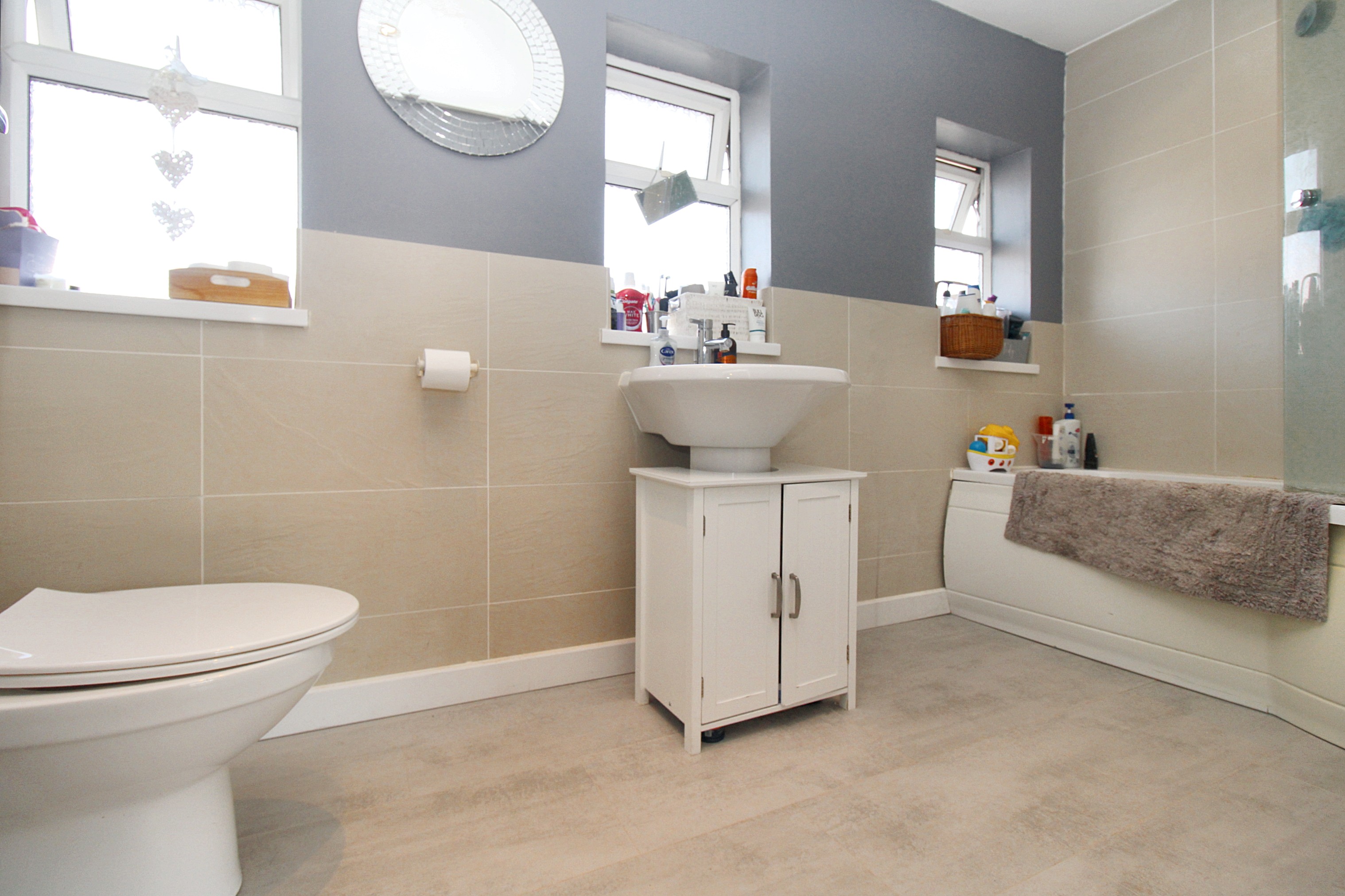 With laminate flooring, radiator, WC, vanity hand wash basin, spotlights, double glazed windows and bath tub with shower attachment.