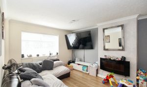 With laminate flooring, radiator, double glazed windows, door leading to kitchen and patio doors leading to rear garden.