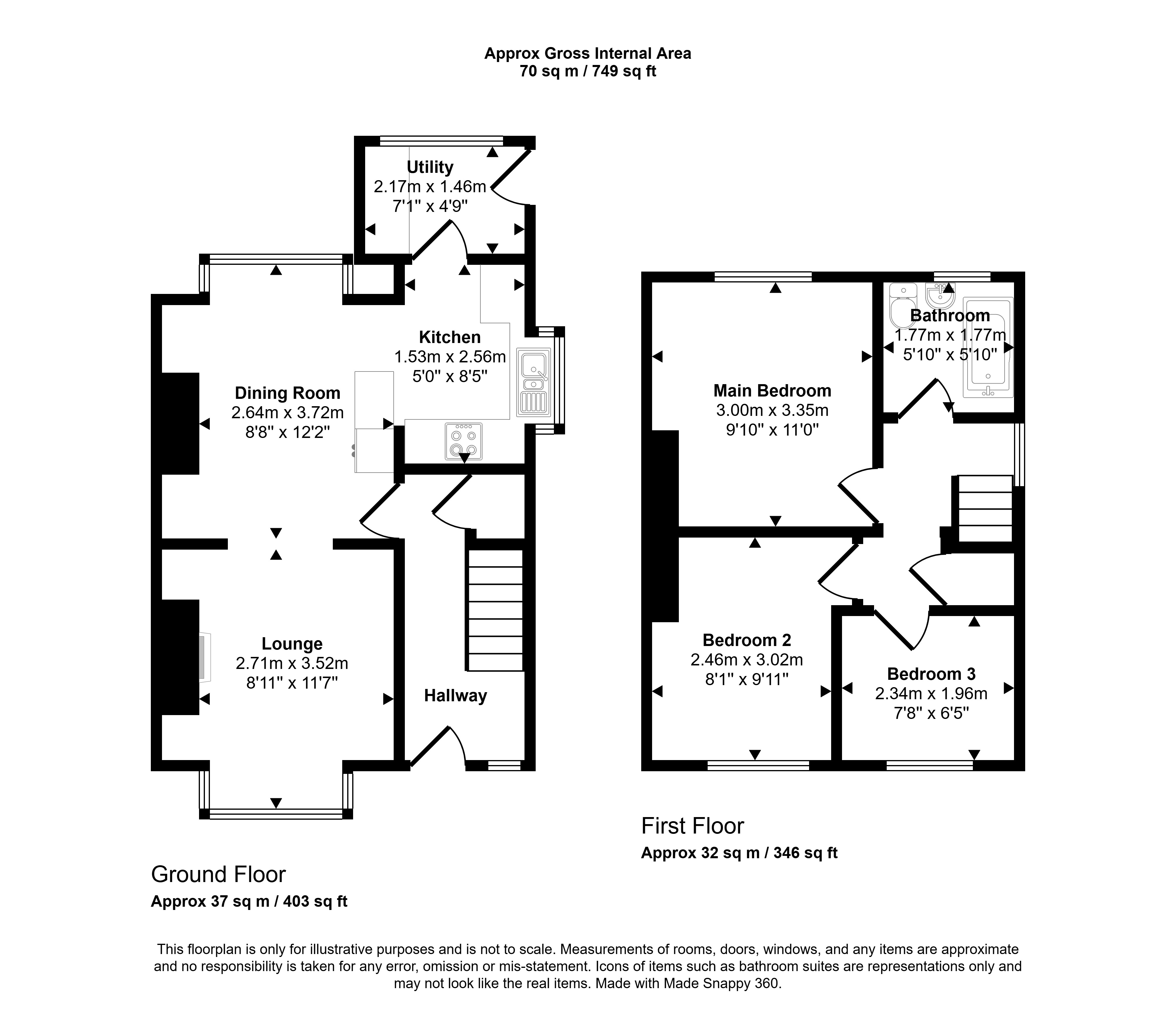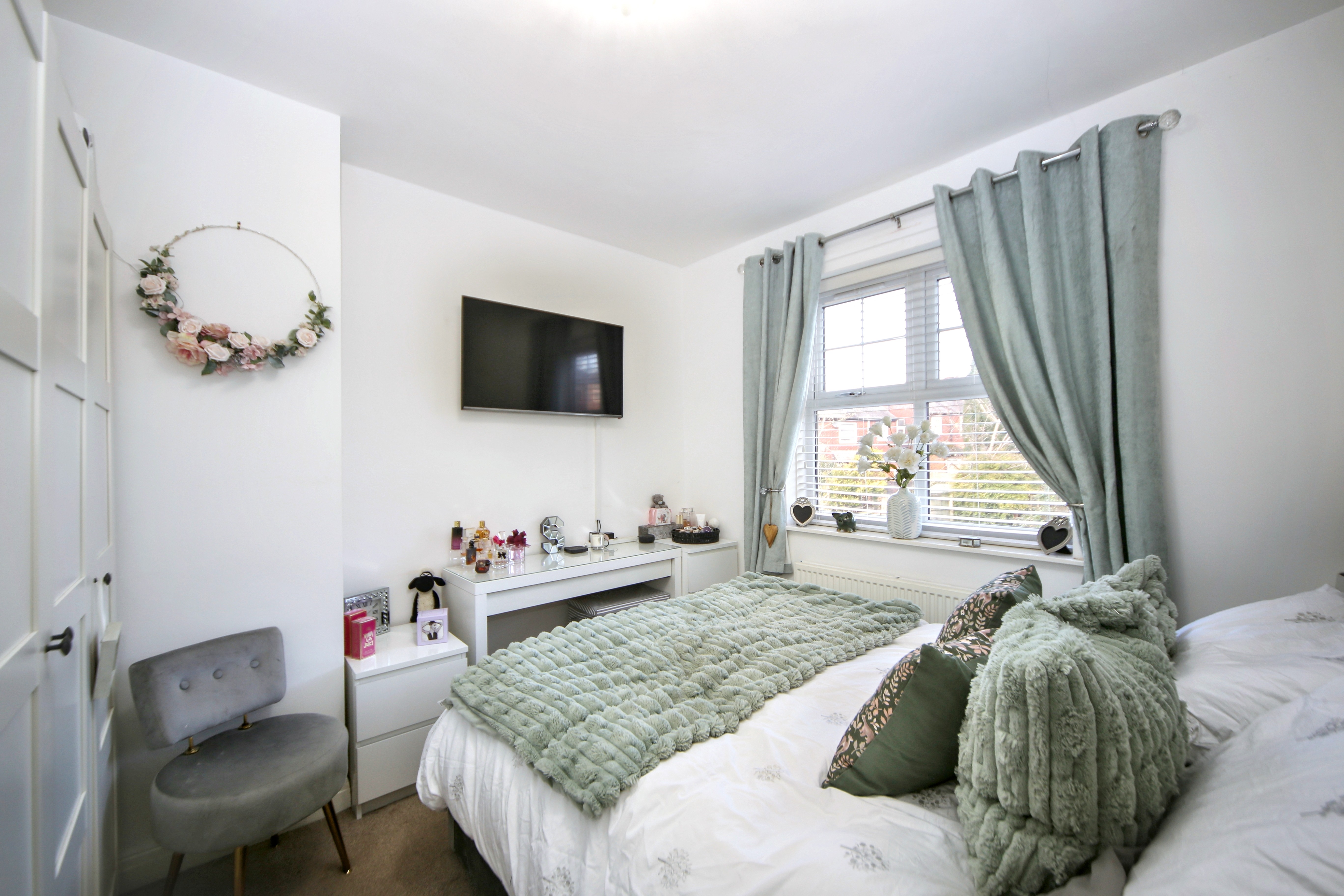 The kitchen is well arranged and is complemented by a separate utility room, providing additional storage and practicality. French doors and modern windows throughout enhance the light and airy feel of the home. Blinds have been fitted throughout and are approximately 18 months old.