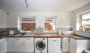 Upon entering, you are welcomed by a bright entrance hall which leads to a convenient downstairs WC and a useful storage area. The spacious lounge is warm and inviting, featuring a charming log burner that adds a cosy atmosphere, especially during the colder months. To the rear, the heart of the home lies in the open-plan kitchen and dining area—perfect for everyday family living and entertaining—offering direct access to a private garden. The outdoor space includes a side pergola, ideal for relaxing or dining al fresco in the warmer seasons.