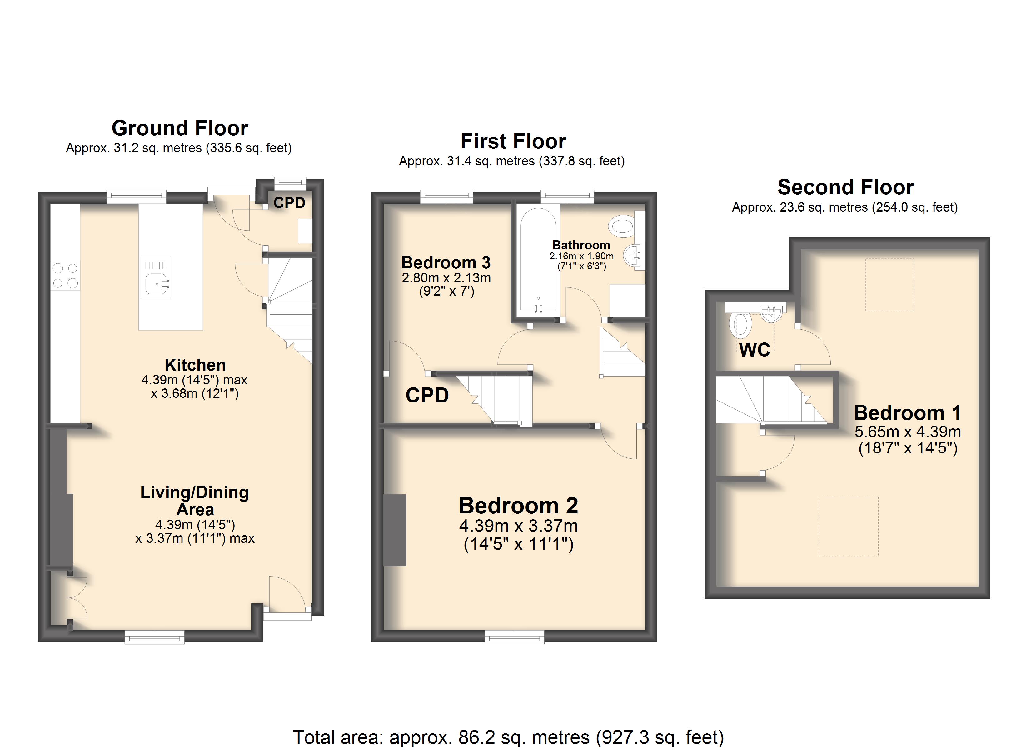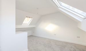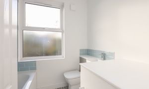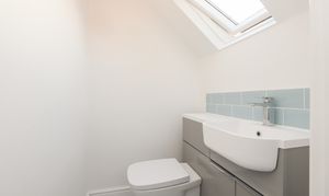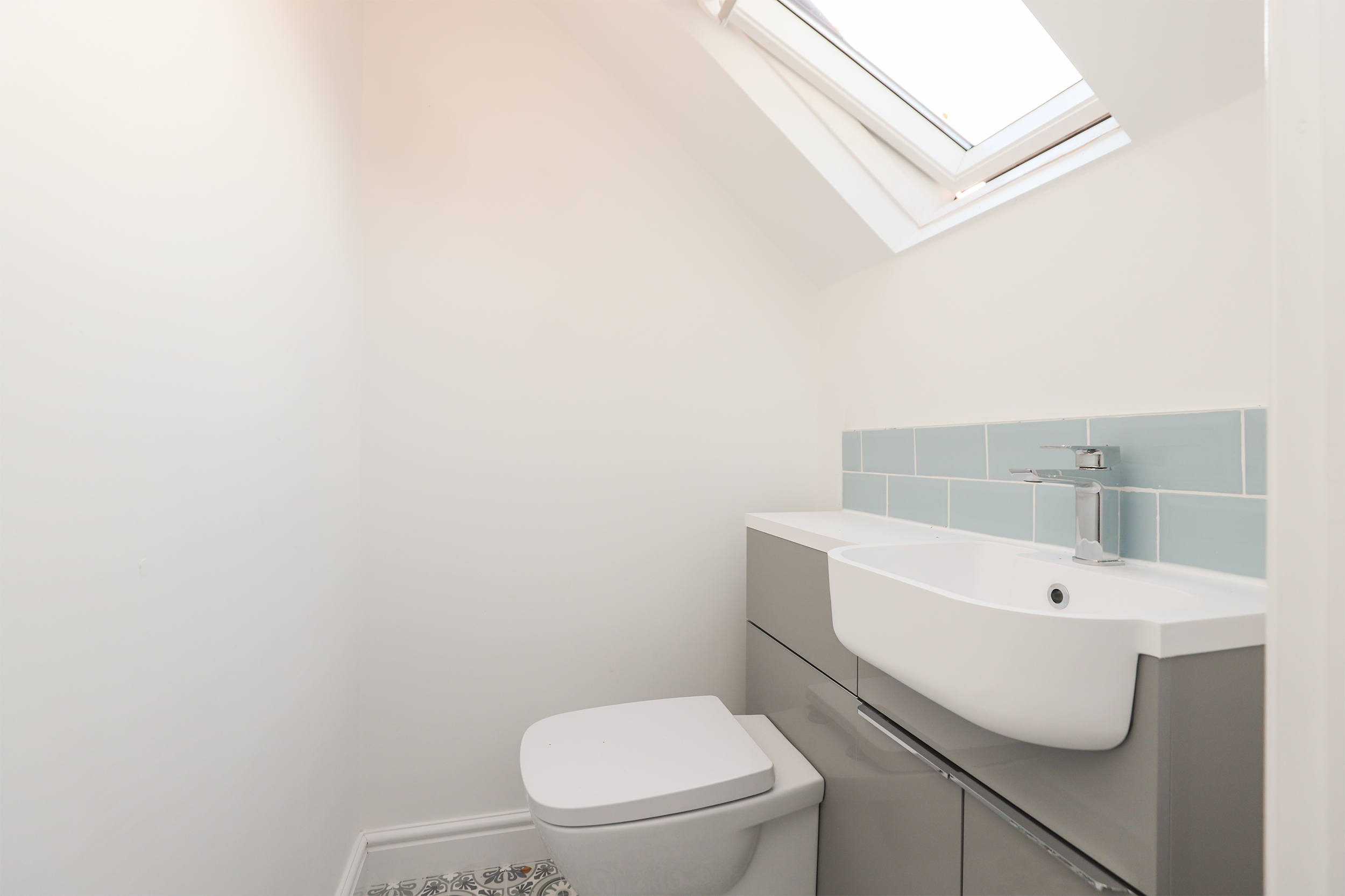 The principal bedroom occupies the entire second floor, providing a spacious retreat complete with an en-suite W/C. Two further well-appointed bedrooms can be found across the first floor, accompanied by a family bathroom with a three-piece suite.