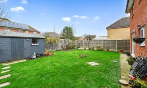 Outside, the property features a well-maintained garden laid to lawn, providing a safe and attractive space for children to play or for relaxing outdoors. Gated side access leads to a large timber storage shed, offering ample space for garden equipment or bicycles. To the front, a block paved driveway provides off-road parking for a minimum of two vehicles, ensuring practicality for busy households. The outdoor space is designed for low maintenance, allowing you to make the most of your leisure time. This excellent family home combines generous living accommodation with a private garden and secure parking, making it an outstanding choice for those seeking a modern lifestyle in a popular location.