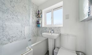 On the first floor there are two well-proportioned bedrooms, including a particularly generous principal bedroom, along with a family bathroom accessed from the landing.