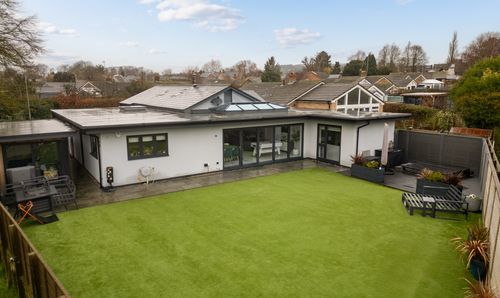 Inside, the home immediately welcomes you with warmth and personality. The entrance hall leads to a wonderful reception space, where exposed timbers and wooden flooring set the tone for the rest of the property. The formal living room centres around a striking cast-iron Danish Heta multifuel burner with a brick surround and oak mantel- the perfect spot to unwind on cooler evenings. From here, the room opens into a conservatory that enjoys a seamless connection to the garden. Currently used as a stylish home office, this versatile room is ideal for modern living and could equally serve as a playroom, reading nook, or an additional sitting area.