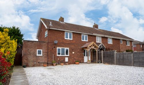Upstairs, three comfortable bedrooms are arranged off the landing. The main bedroom sits to the front, while the second bedroom enjoys beautiful, far-reaching views across open countryside. From here, you can often glimpse grazing sheep in the neighbouring field- a quintessentially English view that captures the peaceful rhythm of rural life. The recently refitted family bathroom is a standout feature, complete with a roll-top bath on cast feet and elegant tiling, creating a luxurious yet classic retreat.