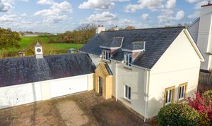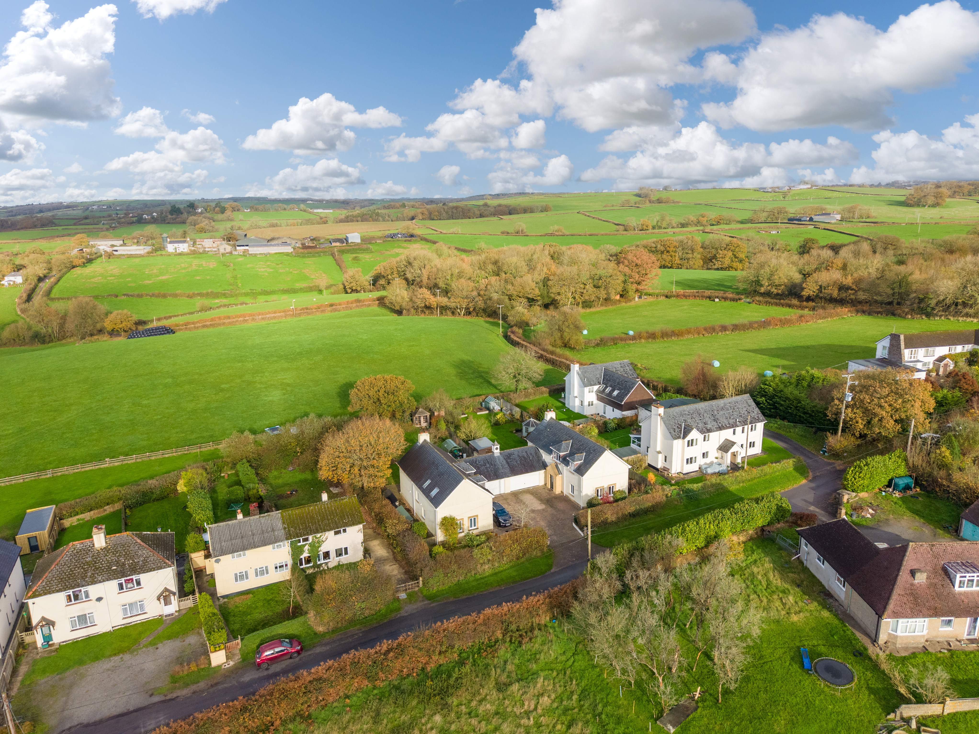 This contemporary four bedroom home sits in a peaceful Devon village with lovely countryside views, a large garden, a double garage and spacious, well-planned accommodation. It was originally built to a high standard and has been updated in recent years, offering a comfortable, energy-efficient home in a quiet rural setting. Broadwoodkelly is a pretty village with a friendly feel, surrounded by rolling fields and served by a school bus route and a nearby farm shop. Winkleigh is about three miles away with everyday amenities, and Okehampton is within easy reach for a wider range of shops, schools and access to Dartmoor.