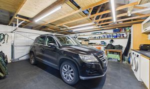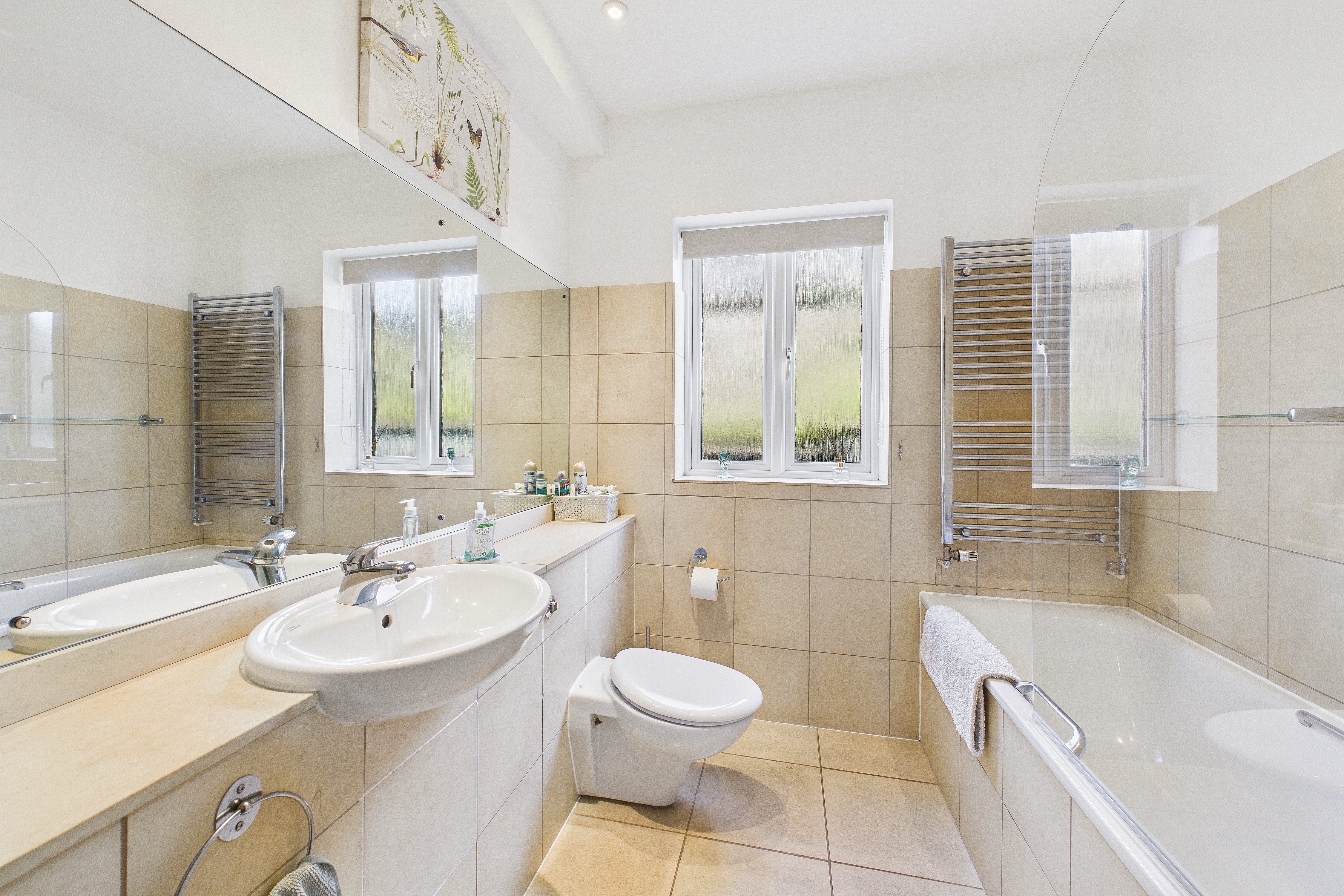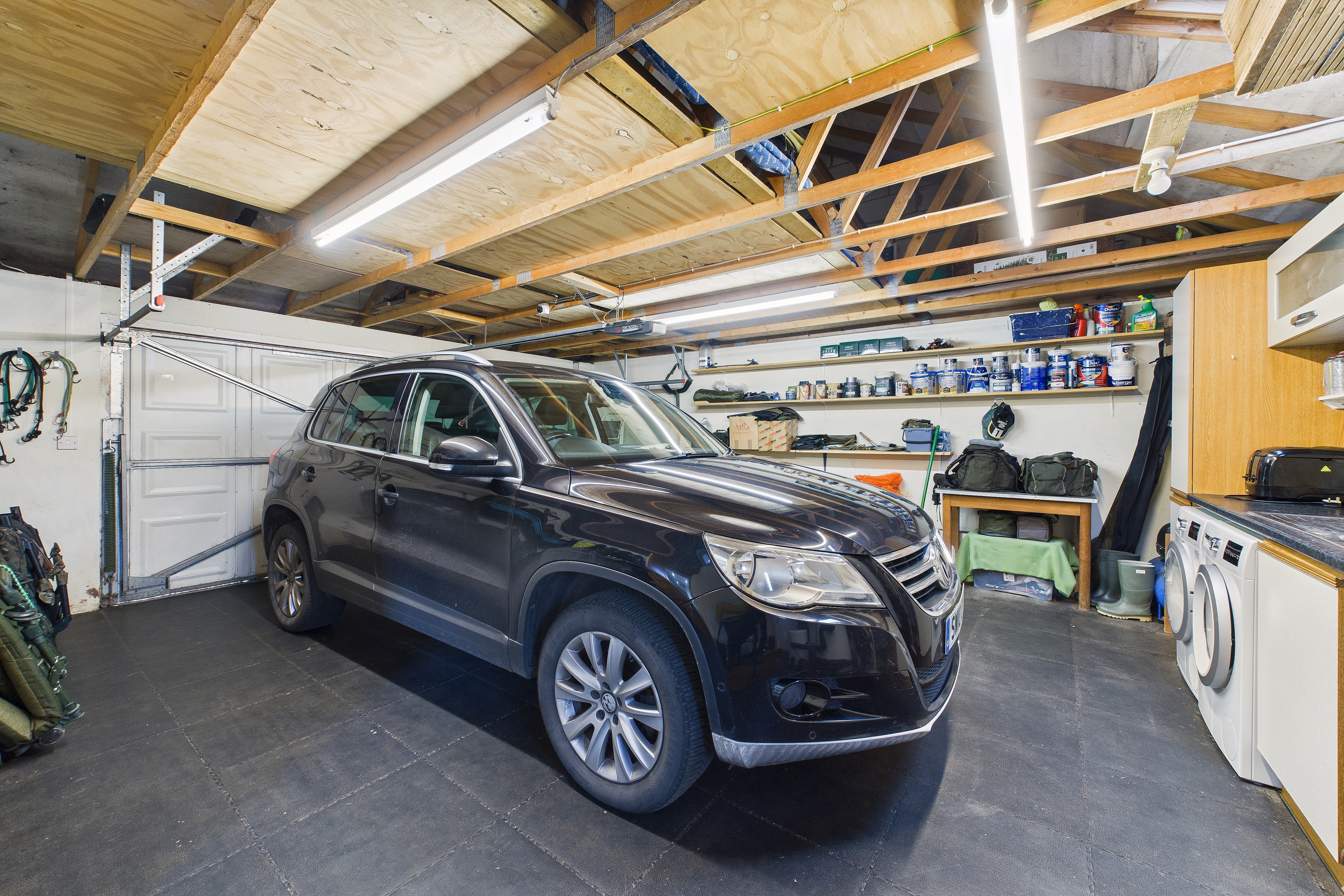 Outside, a brick paved driveway leads to the large double garage, which has remote controlled doors, power, lighting, utility space and storage. It’s worth noting that the double garage of Green Oaks is attached to the neighbours double garage, hence the linked detached description. We love the fact you can easily move from the house to garage without going outside too. The rear garden is private and level, mainly laid to lawn, with seating areas, a kitchen garden with raised beds and greenhouse, a summerhouse with power and a well-built workshop and potting shed.