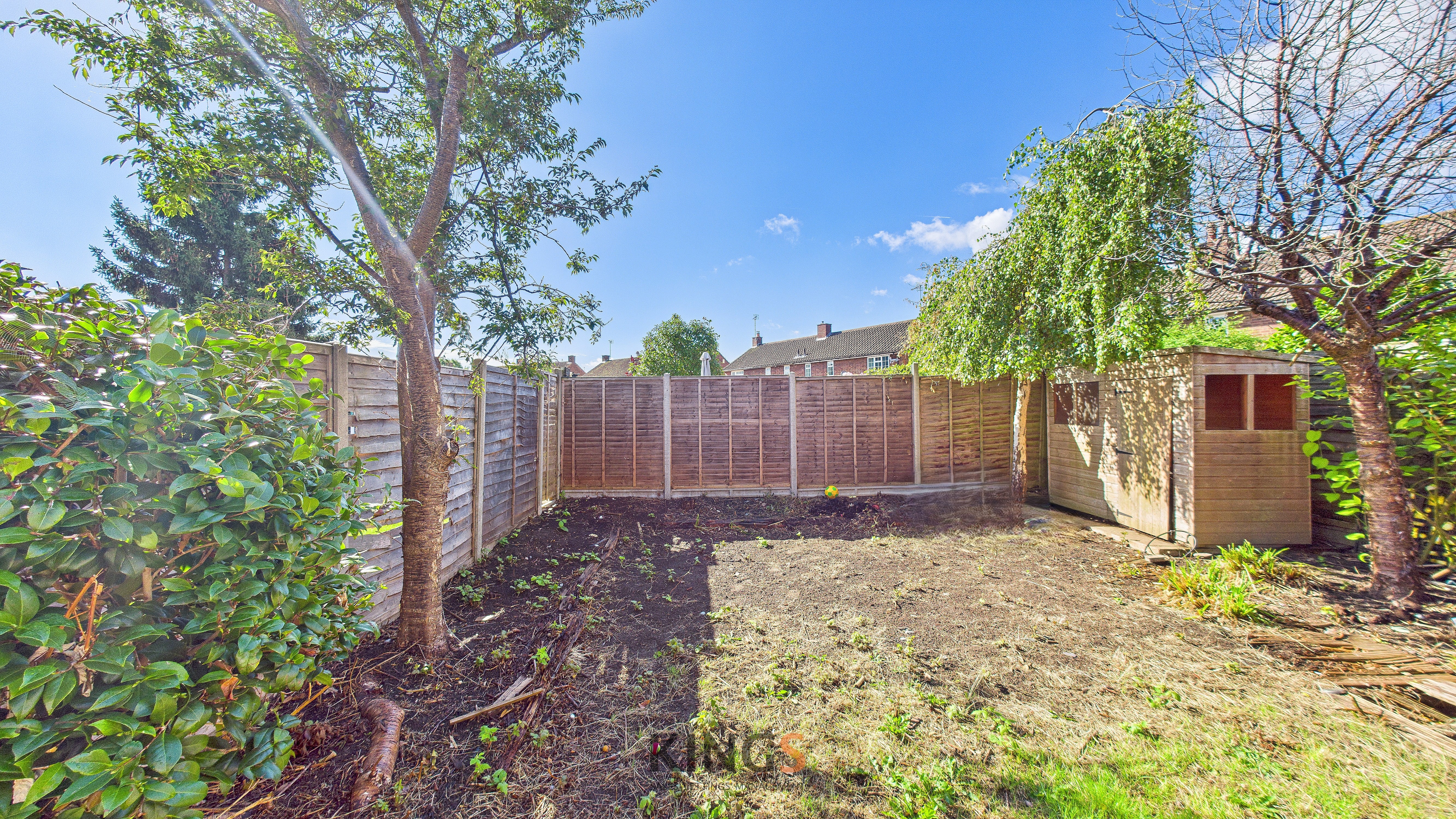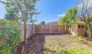 South facing rear garden with lawn and decking areas. Please note that the decking will need to be replaced and to take care whilst viewing.