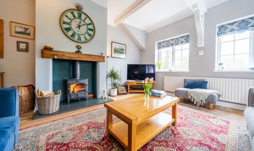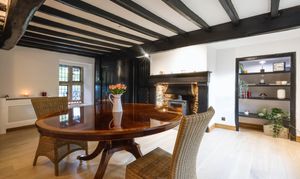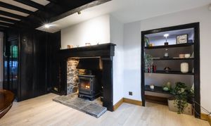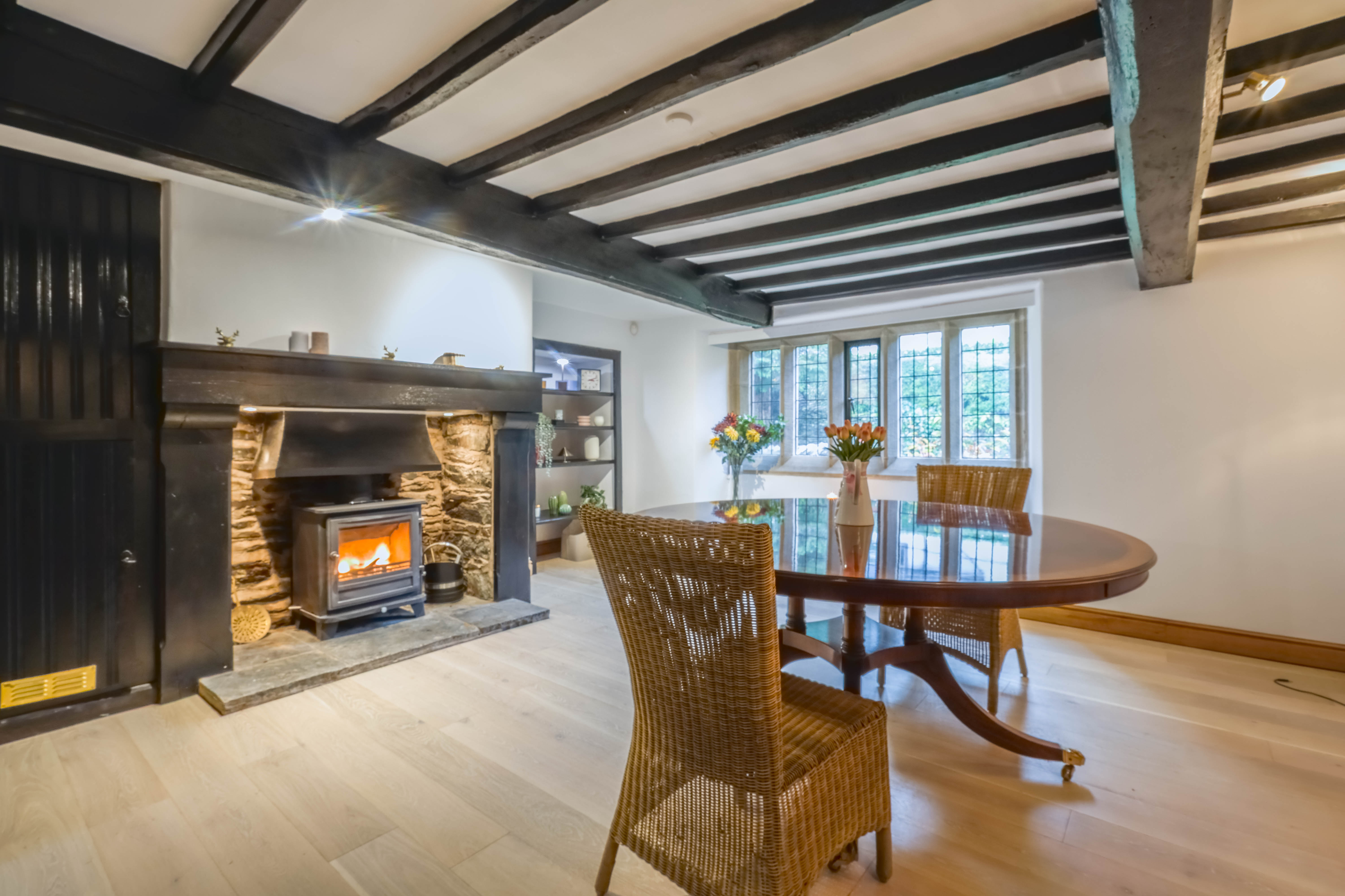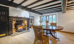 - Spacious dining room perfect for entertaining, complete with a charming log burning stove