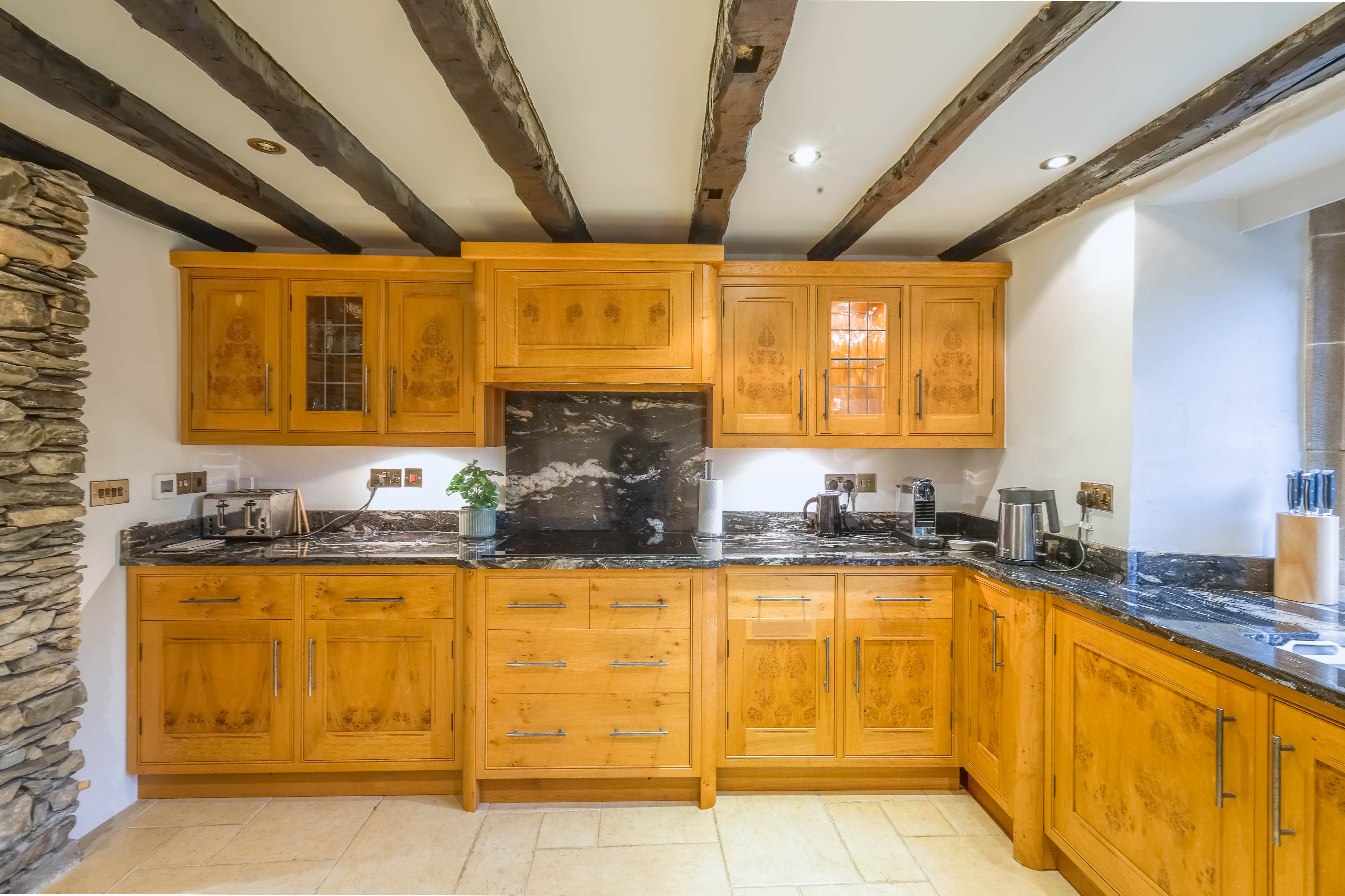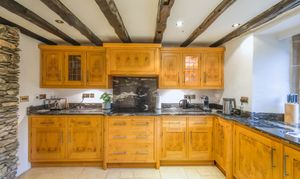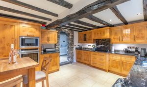 - Rustic fitted kitchen with wooden units, granite worktops and direct access to the garden