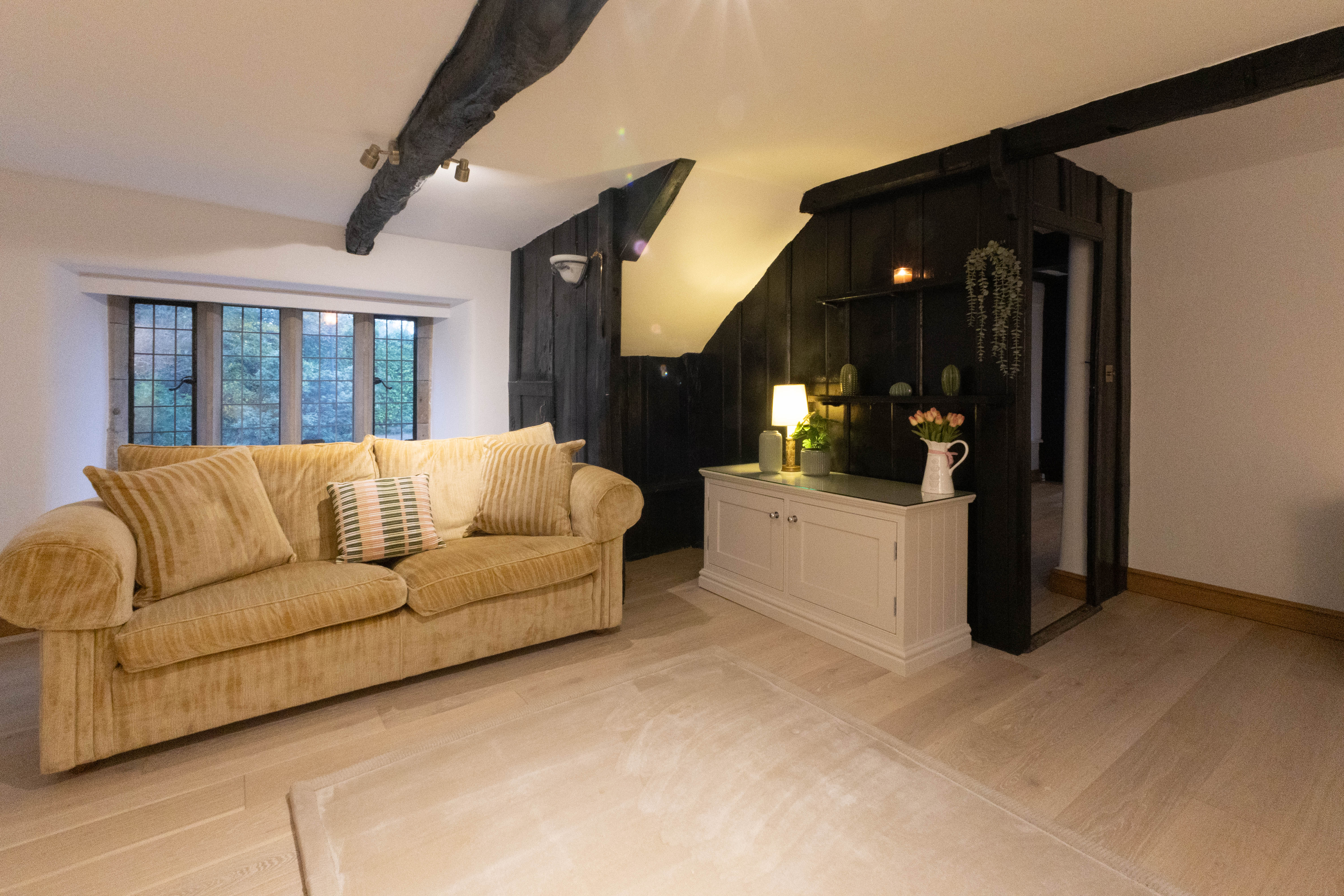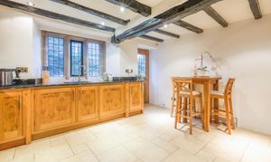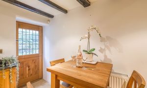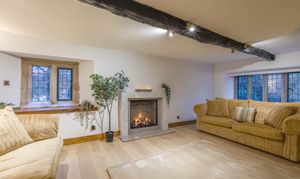 The ground floor offers a wonderful balance of cosy charm and generous space. The elegant sitting room features original windows, exposed beams and a fabulous gas living flame fire, creating a beautifully inviting atmosphere. A separate, spacious dining room provides the perfect setting for entertaining, complete with a characterful log burning stove. The rustic fitted kitchen is full of charm with wooden units, granite worktops and excellent workspace, along with a back door leading directly into the garden. A practical utility room with WC adds further convenience.