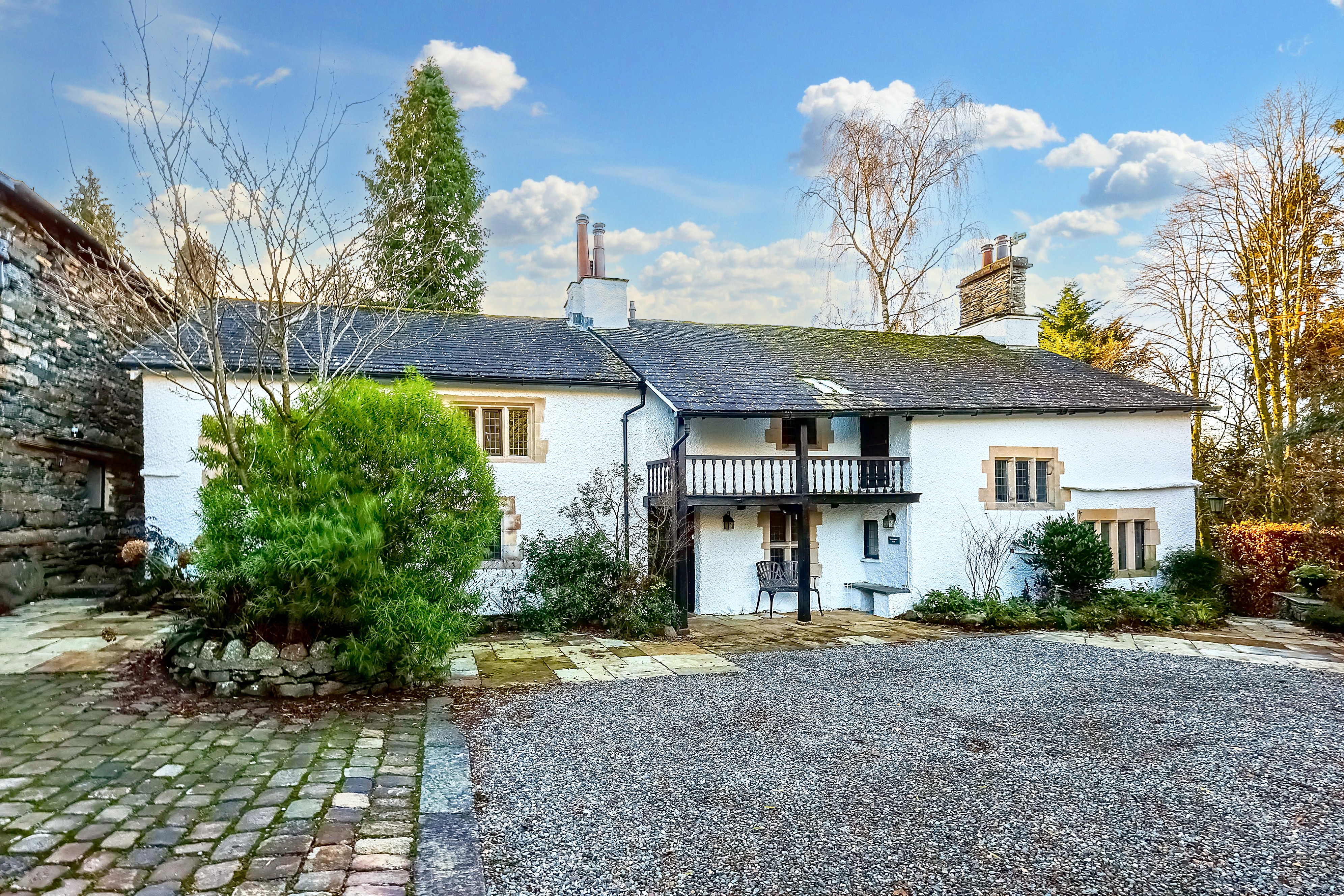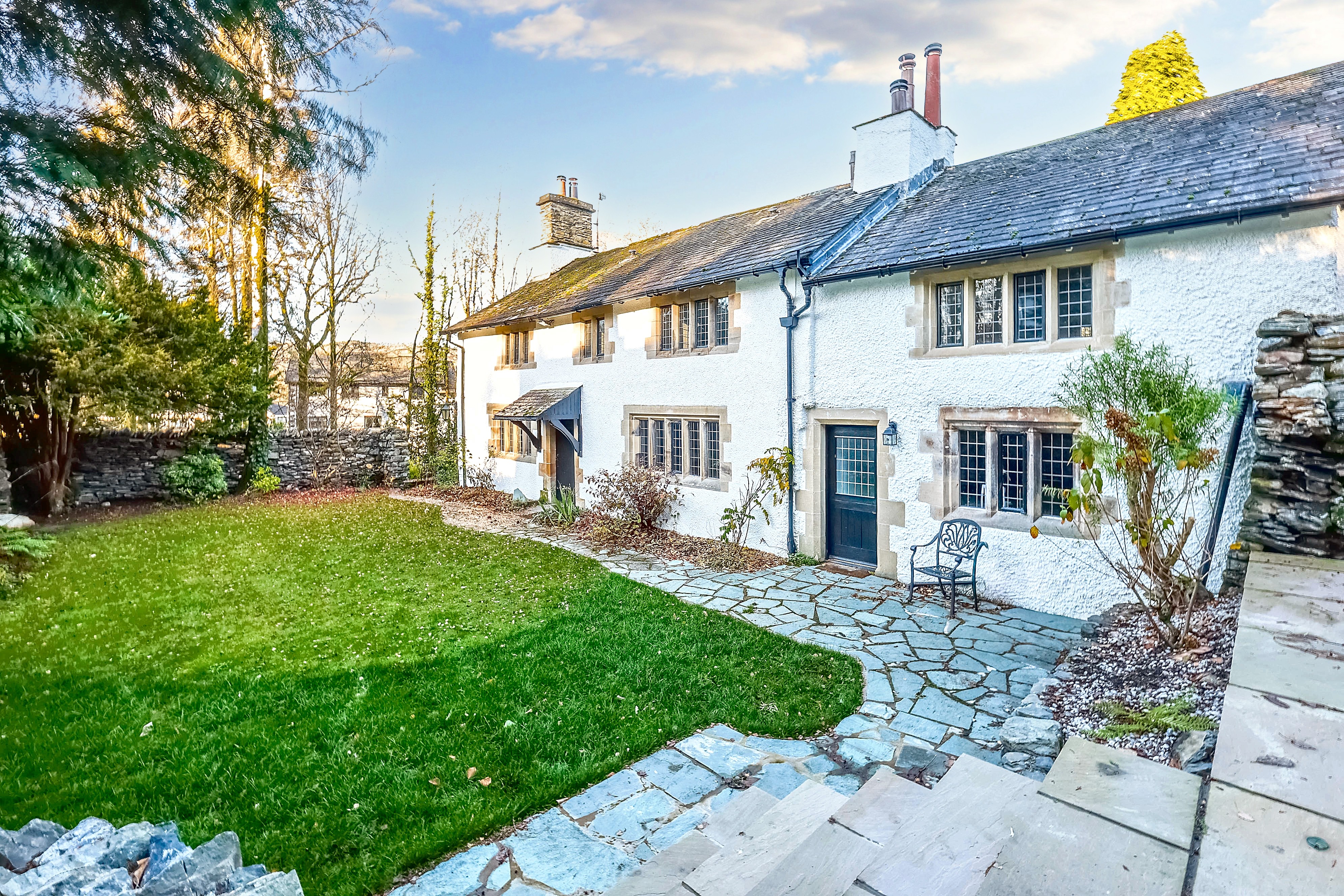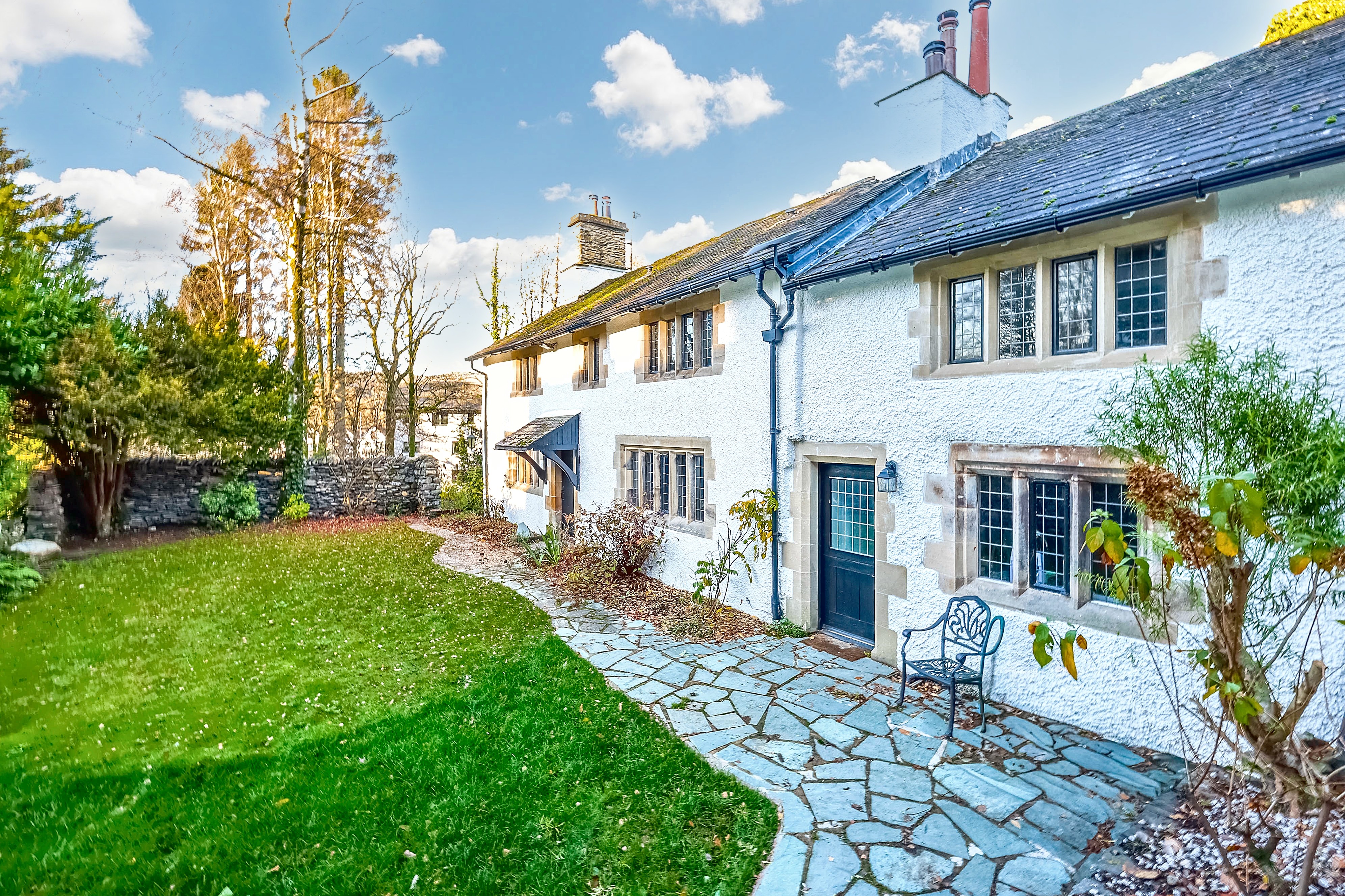 This stunning Grade II listed detached cottage sits proudly on a generous plot in one of Bowness-on-Windermere’s most desirable locations. Just a one minute walk from the marina and moments from the lake, this exceptional home blends charming period character with impressive living space, offering a rare opportunity in this highly sought after setting. With exposed beams, original windows and rustic stonework throughout, the property exudes warmth, history and timeless appeal.
