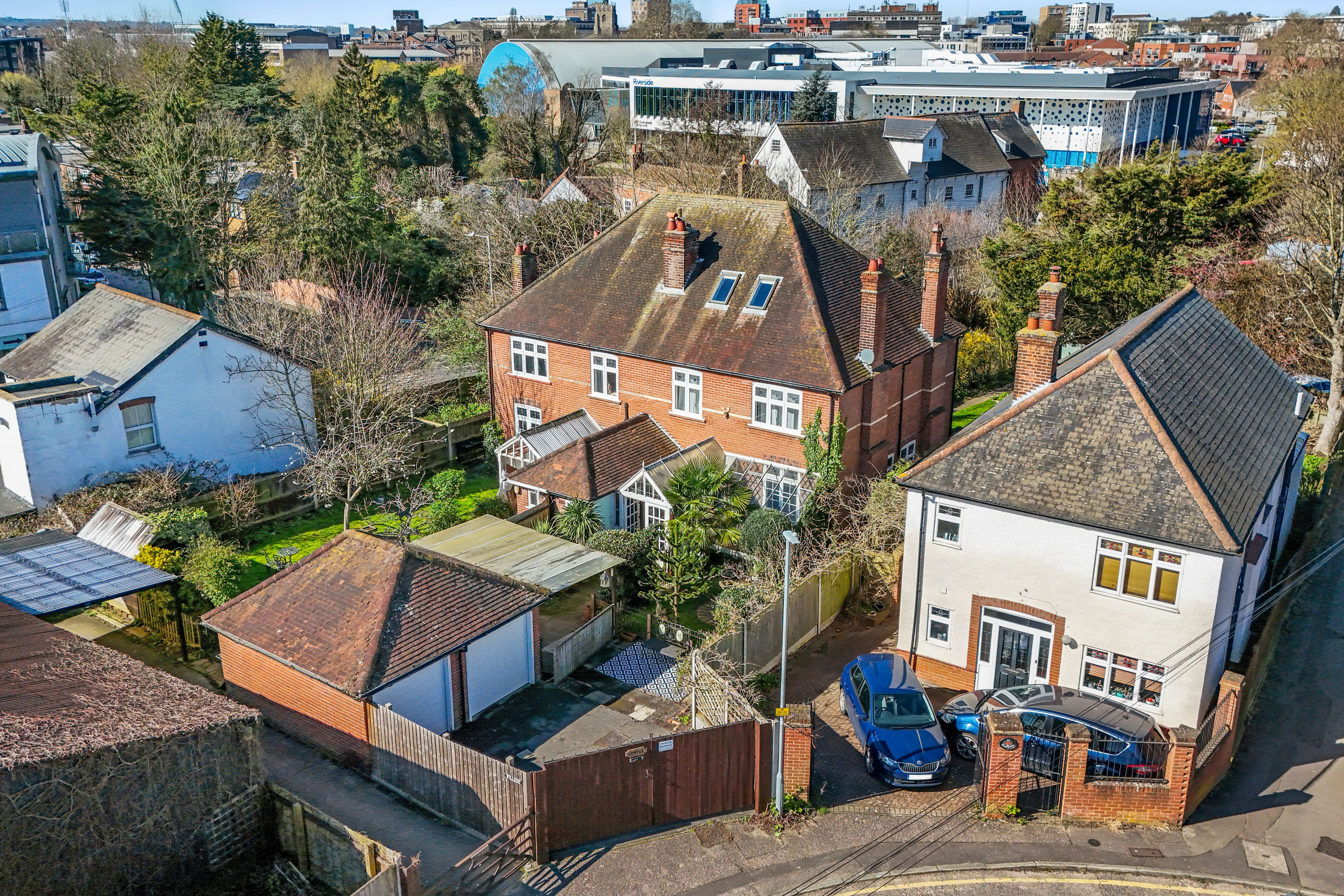 Guide Price £700,000-£750,000 A fabulously unique three double bedroom, semi-detached family home including attractive private front and rear gardens, double garage and secure gated driveway parking, perfectly positioned within this prime central Chelmsford City location, yet in the other direction, Riverside footpath and cycle track leads through ‘Chelmer Valley Nature Reserve’ all the way to the village of Broomfield and beyond.