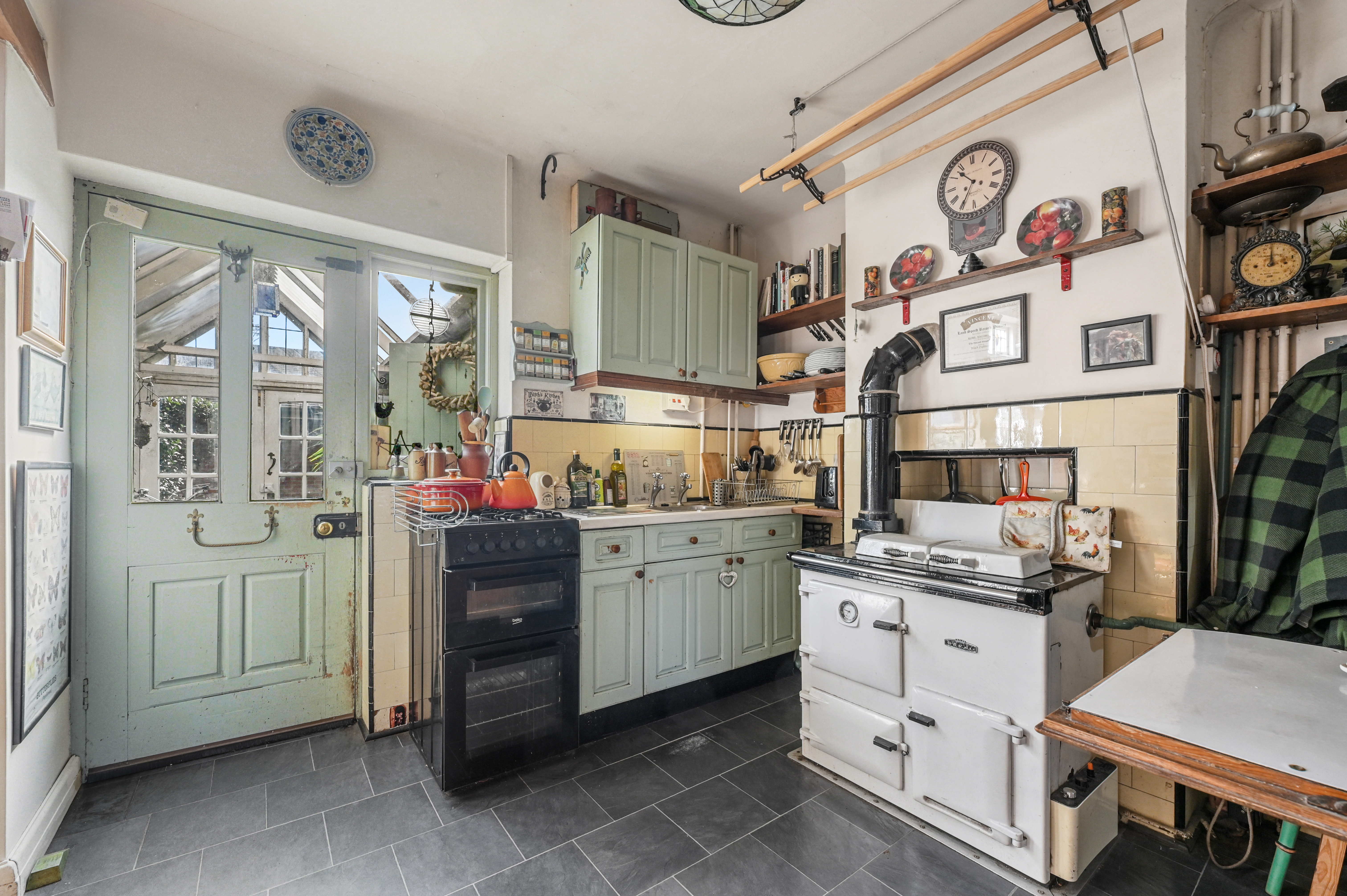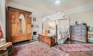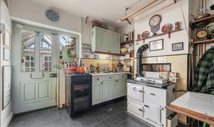 Nestled behind is the dining room/reception two, again with many period features and providing plenty of space in which to entertain. This opens on to the adjacent kitchen which includes a range of base and eye level units, work surfaces, space for freestanding oven, Aga as well as a useful pantry offering space for a fridge freezer. Concluding the downstairs accommodation is the pretty conservatory, a lovely additional spot in which to relax and unwind but also a practical space where a utility area and storage room are located. There is also an outside WC.