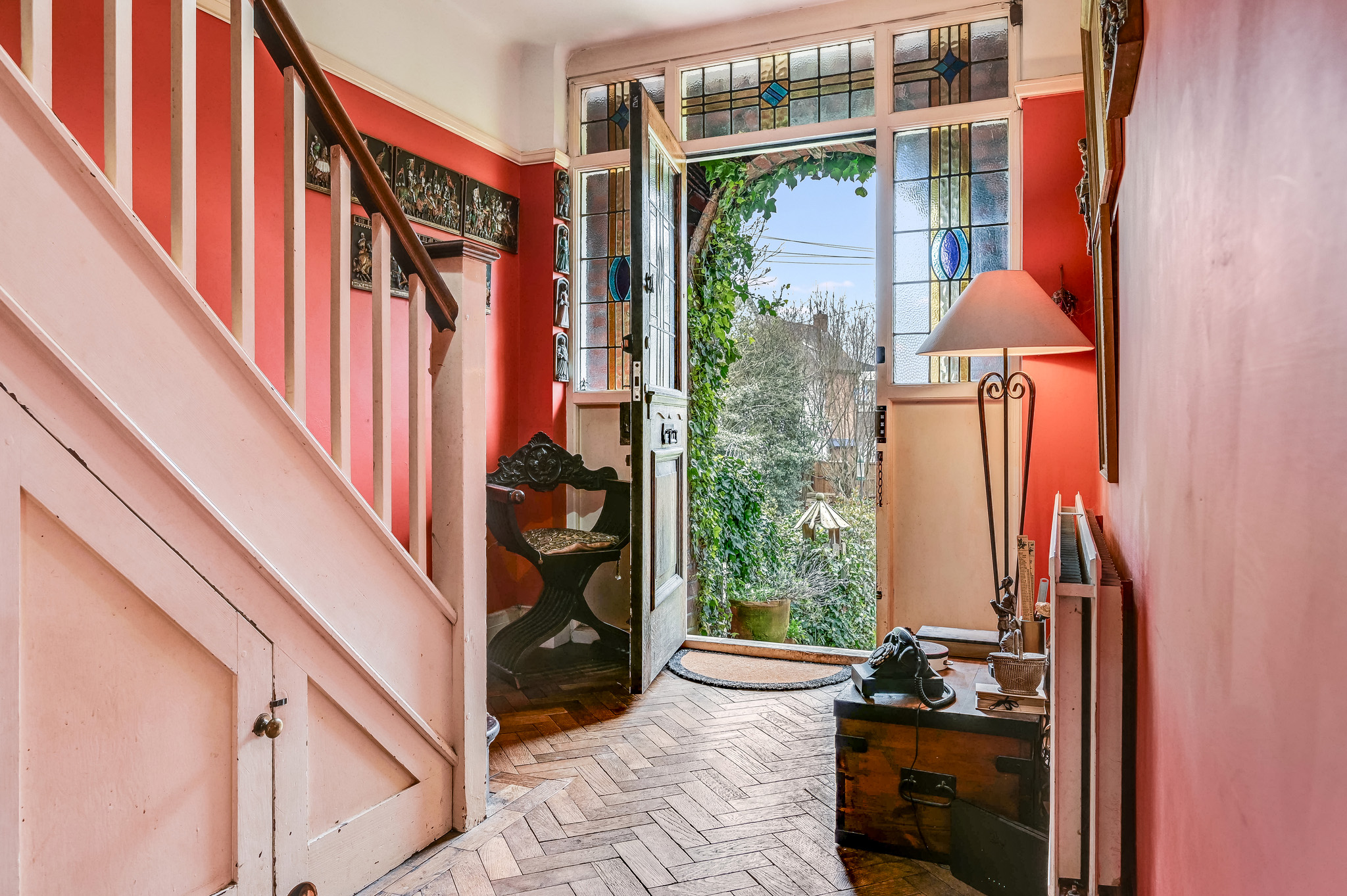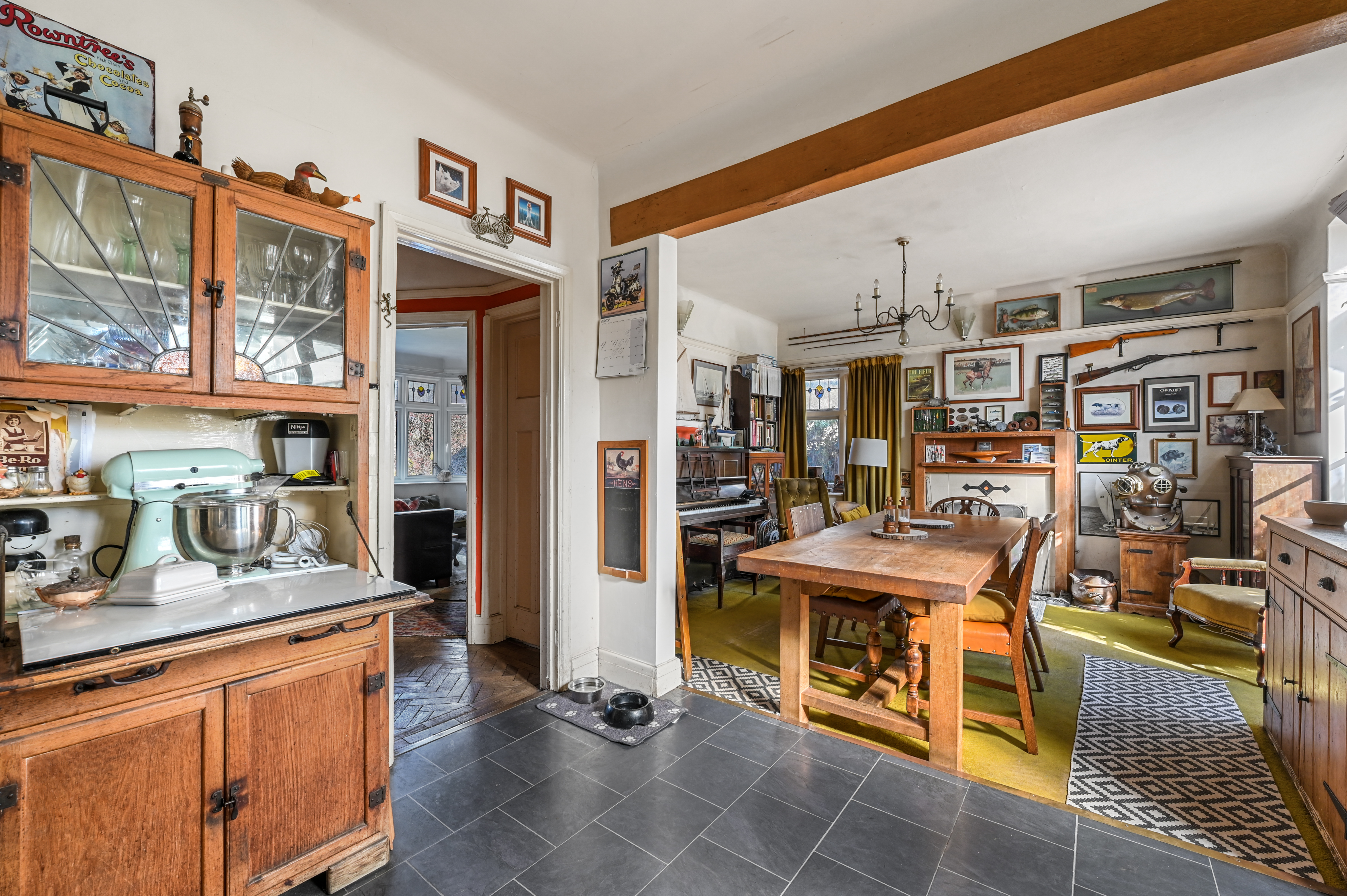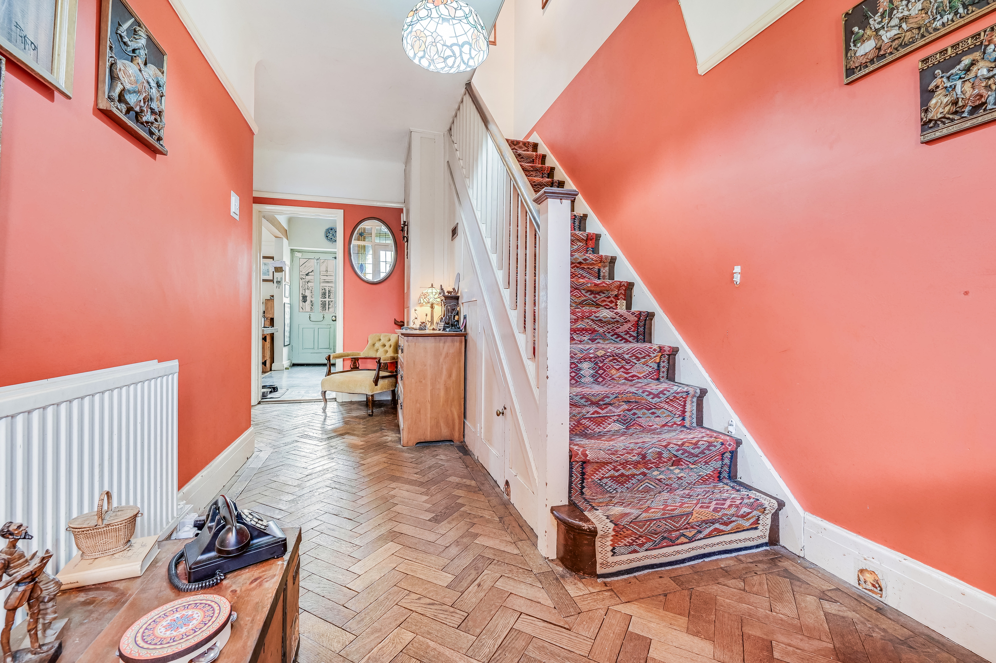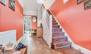 The front door opens onto the opulent entrance hall, including oak block Herringbone flooring, providing access to the reception room, kitchen and dining room as well as stairs leading to first floor landing. The marvellous reception room is positioned to the front of the house and includes a feature fireplace, picture rails and a charming bay window.